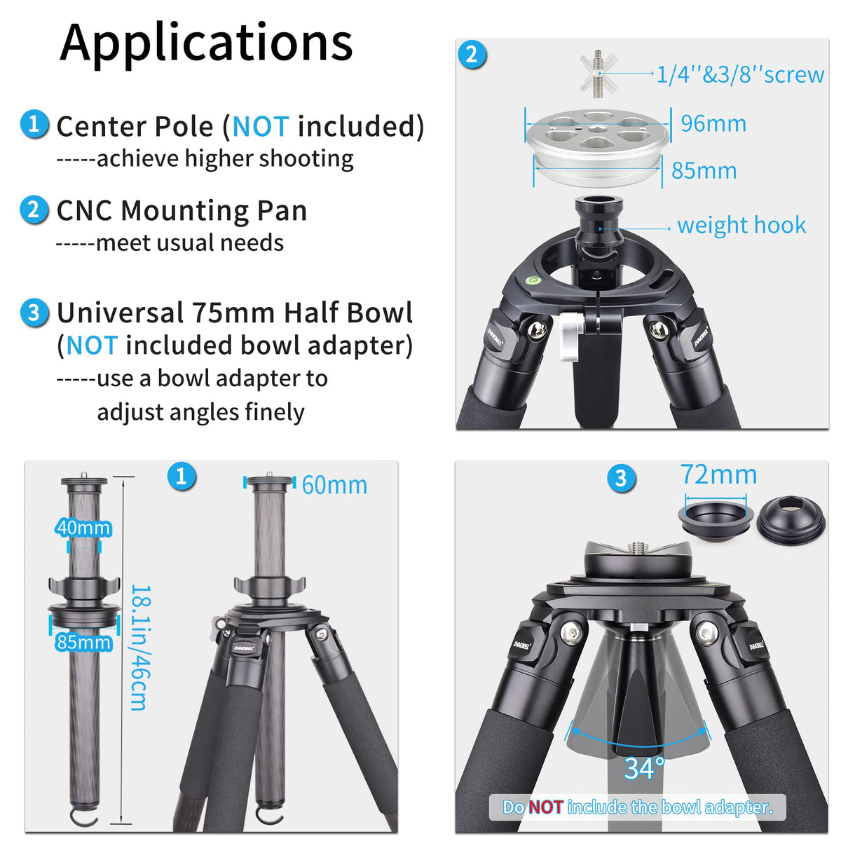 Mounting Pan Can Be Replaced By 75Mm Or 100Mm Bowls. There Are Hooks At The Bottom Of The Plate To Increase The Stability Of The Camera Tripod.