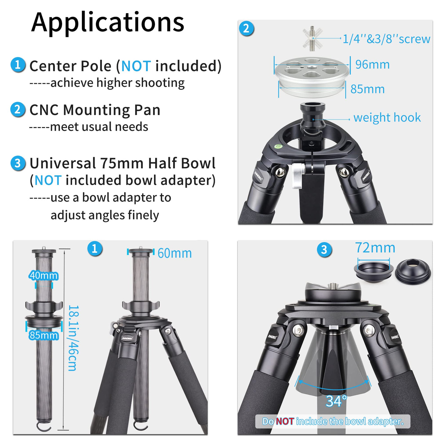 1. Material - The Camera Tripod Is Made Of Carbon Fiber For Highter Strength And Longer Service Life. 2. Workmanship - The Carbon Fiber Tripod Is Built By Top Engineers To Ensure Quality. 3. Load-Bearing - Unparalleled Overweight, Maximum Load Capacity 88Lb/40Kg.