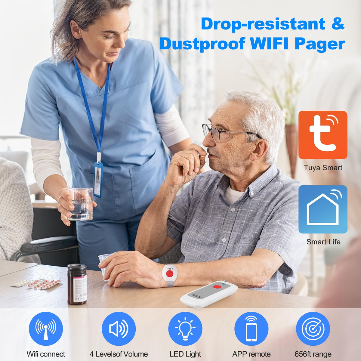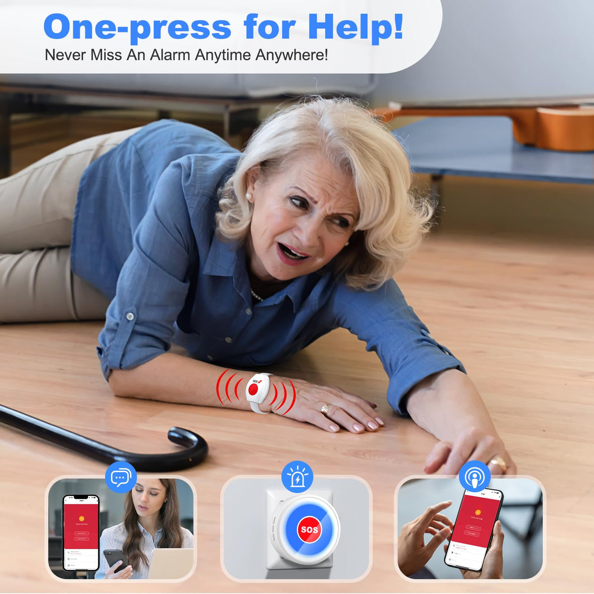 Caregiver Pager Life Alert Systems For Seniors No Monthly Fee Wi-Fi App Control Elderly Alarm Call Button Panic Alarm For 1 Call