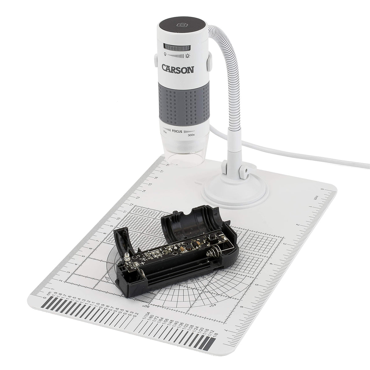 The Eflex (Mm-840) From Carson Is A Powerful Digital Microscope That Displays The Magnified Image Right On Your Computer Screen. The Impressive 75X/300X Effective Magnification (Based On A 21'' Monitor) Allows Users To See Details Of Ordinary Objects That You Never Knew Existed! Capture An Image Or Take Close Focus Video With The Click Of A Button. The Included Flexible Neck Stand (8.5 Inches At Tallest Point) With Suction Cup Adapter Attaches To Any Smooth Surface Or To The Included Graduated Base With Ease. The Graduated Base Shows Measurements In Inches And Centimeters. The Eflex Contains An Adjustable Led Lighting Knob That Controls The Brightness Of The 4 Led Lights Included In The Device. There Is Also A Focusing Knob To Ensure The Sharpest And Clearest Images Possible. The Eflex Is Compatible With Windows 10, 8/8.1, 7 (32/64 Bit), Vista (32/64 Bit), Xp Sp2+ And All Mac Operating Systems. Usb 2.0 Or 3.0 Port Is Required For Compatibility With Your Computer. The Eflex Is Powered By The Usb Port Of Your Computer So No Batteries Are Needed. The Magnification Will Increase With Larger Monitors. The Eflex Is Backed By Carson. Please Note, The Effective Magnification Is A Combination Of The Optical System And A High Powered Digital Zoom.