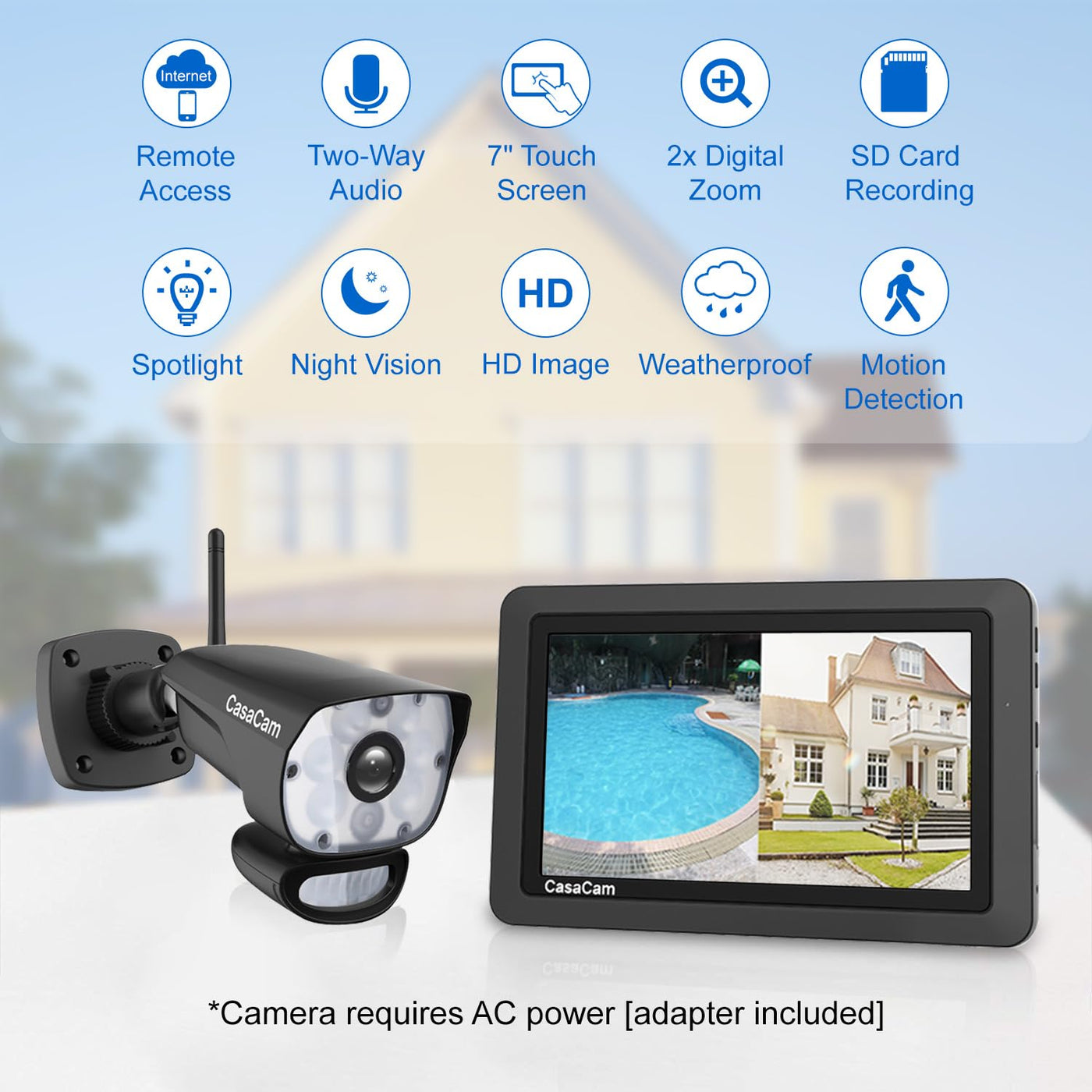 Casacam Vs1002 Wireless Security Camera System With Light Camera And 7 Monitor, Two-Way Audio, Free App, Sd Card And Battery Ins