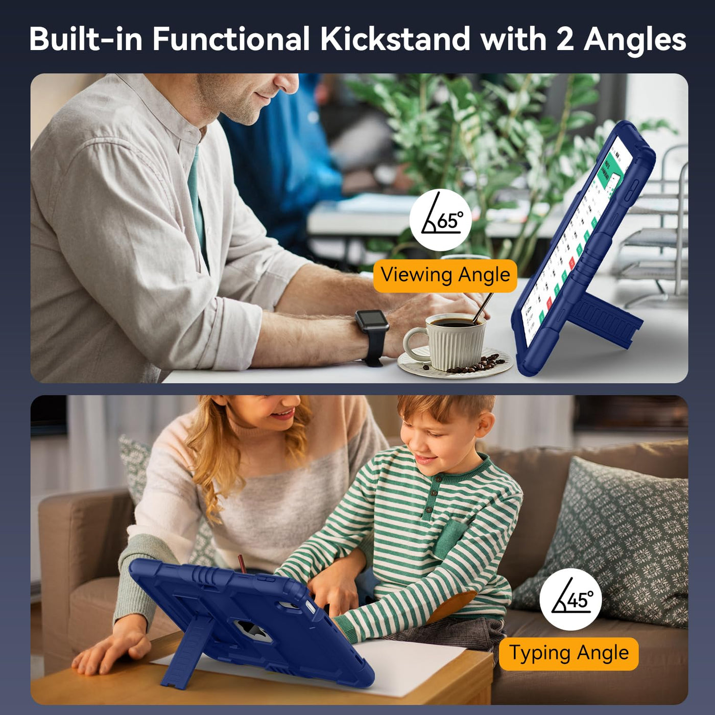 Q: Does this case have a built-in stand for viewing and typing?A: Yes, the case includes a built-in functional kickstand that allows for two different viewing or typing angles, enhancing your comfort whether you're working or relaxing.
