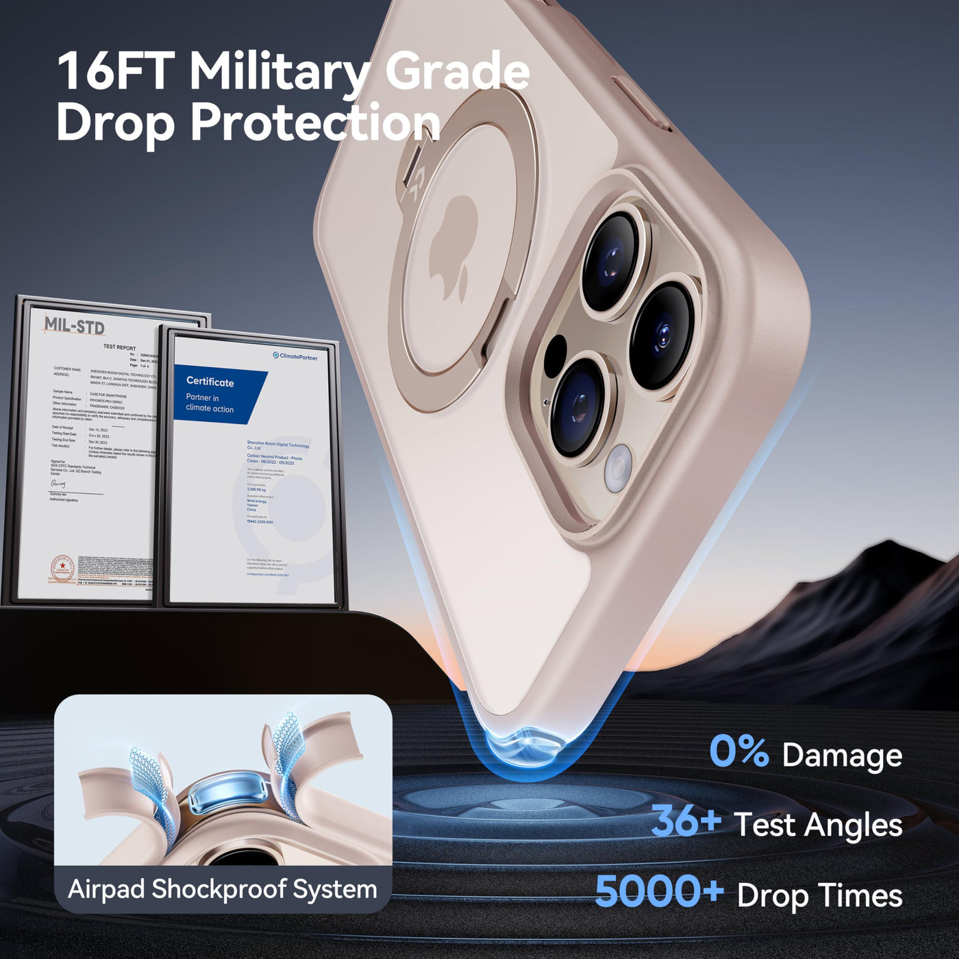 Casekoo Desert Titanium For Iphone 16 Pro Max Case With 360 Upgraded Rotatable Magnetic Stand [16Ft Military Protection] [Compat