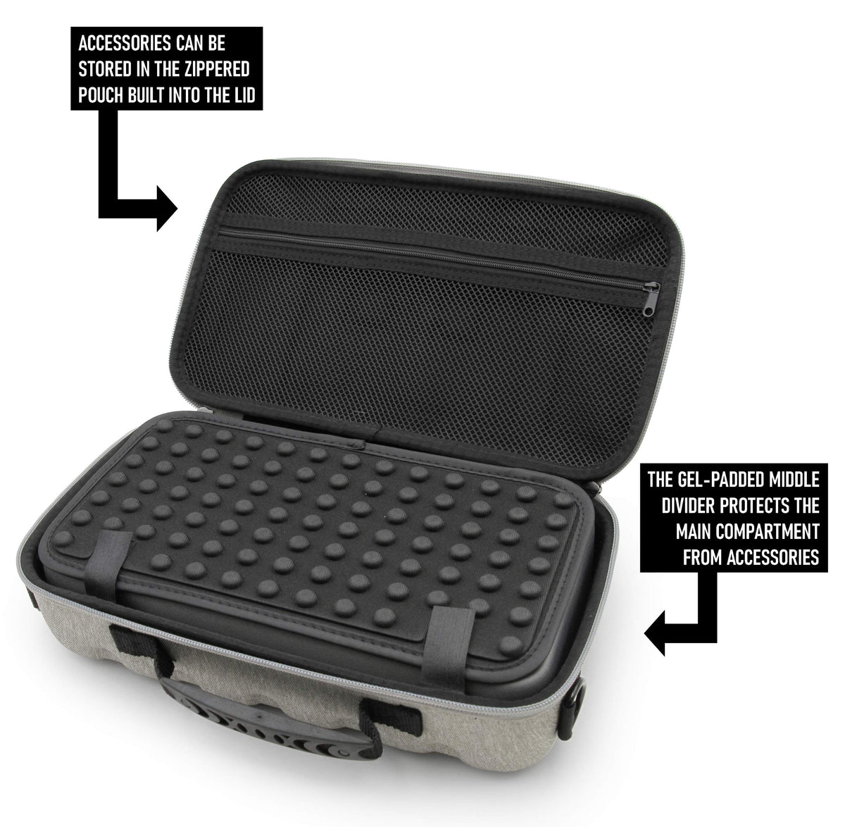 Casematix Travel Bag For Compact Bluetooth Turntable - Case Only, Greyinterior Main Compartment Measures 12.0 X 6.0 X 2.5 To Fit Your Personal Bluetooth Vinyl Turntable. The Power Supply Can Be Placed In The Top Netted Accessory Pocket. The Padded Middle Divider Ensures Separation From Your Handheld Vinyl Turntable And Accesories.Ideal For Travelexterior Measures 12.75'' X 7.5'' X 3.75'' And Features An Adjustable Shoulder Strap And Rubber Travel Handle. Dual Heavy Duty Zippers For Easy Access And All Metal Hardware Add To The Overall Security While Travelling Casually With Your Record Spinner To The Next House Party Or Home Entertainment.