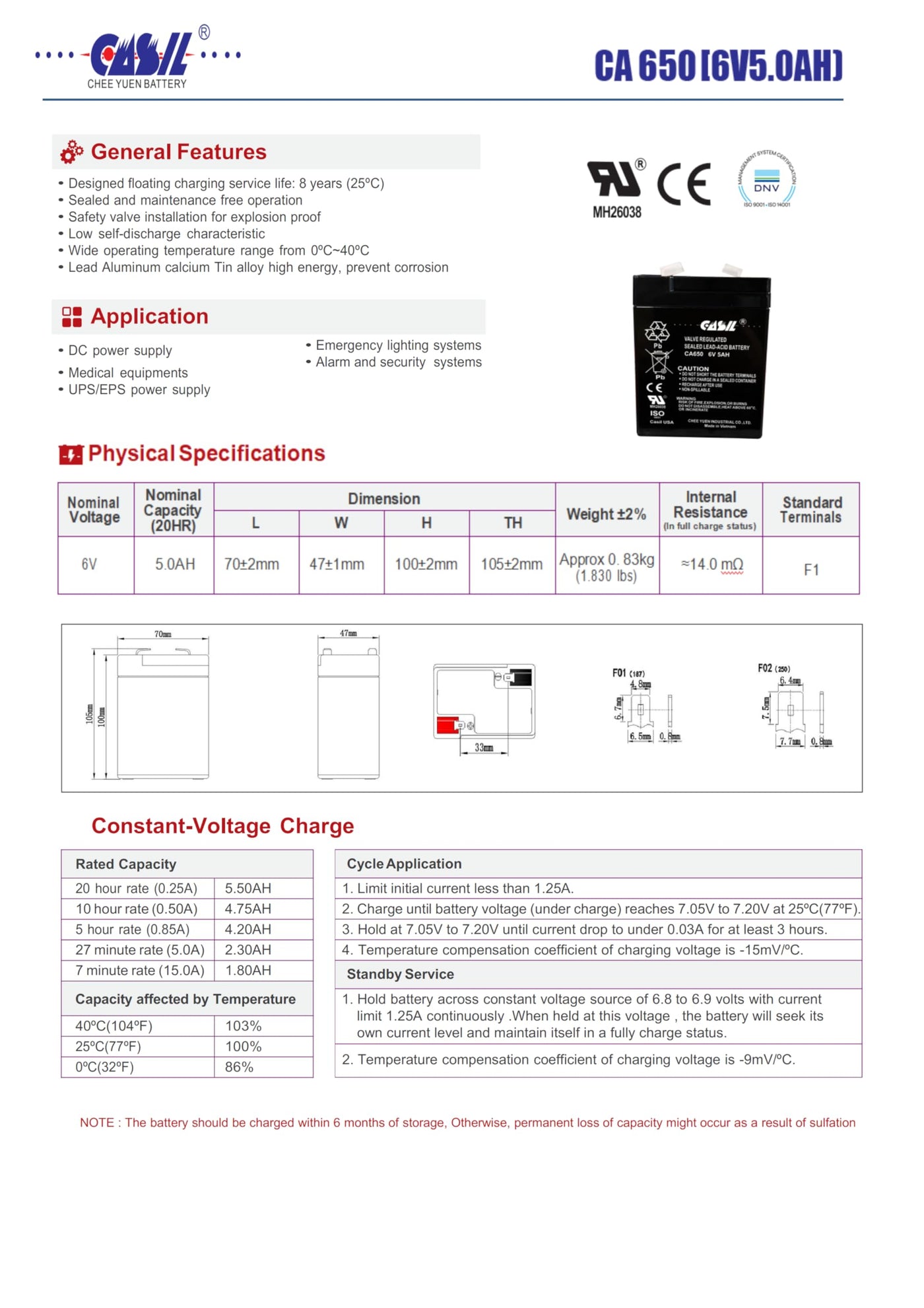 Casil 6V 5Ah Battery 6V Battery For Ride On Toys, 6V Rechargeable Battery Pack, 6V Batteries, Agm, 6V 4.5Ah & 5Ah Agm Sla Rechar