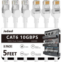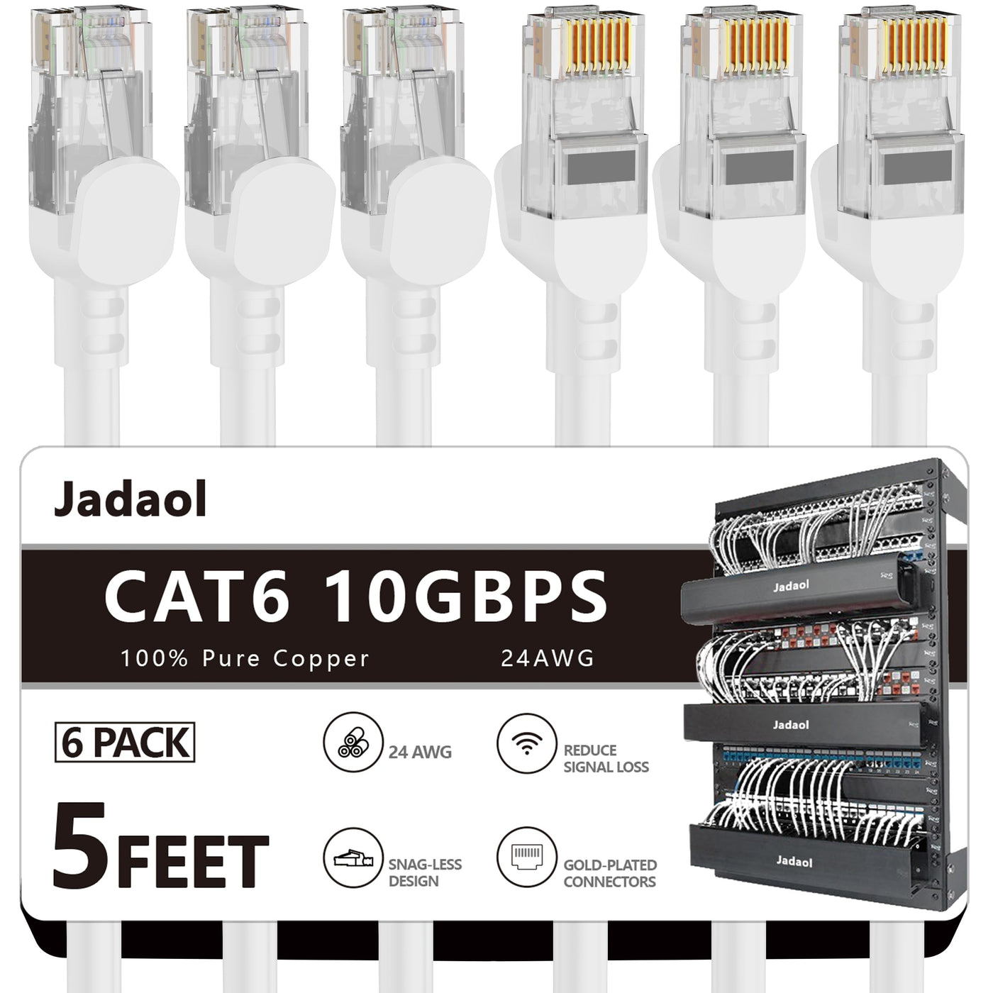 Cat 6 Ethernet Cable 5 Ft 6 Pack, Support Cat8 Cat7 Network, 10Gbps 24Awg Pure Copper, Lan Cable, Network Cable, Cat6 Ethernet C