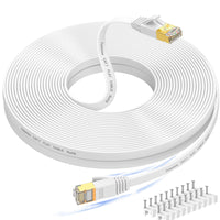 Cat 7 Ethernet Cable 100 Ft High Speed, Flat Internet Network Lan Wire, Long Shielded Patch Cord For Modem, Switch, Router, Xbox, Faster Than Cat5E/Cat5/Cat6/Cat6E, � 100 Feet, Free Cable Clips