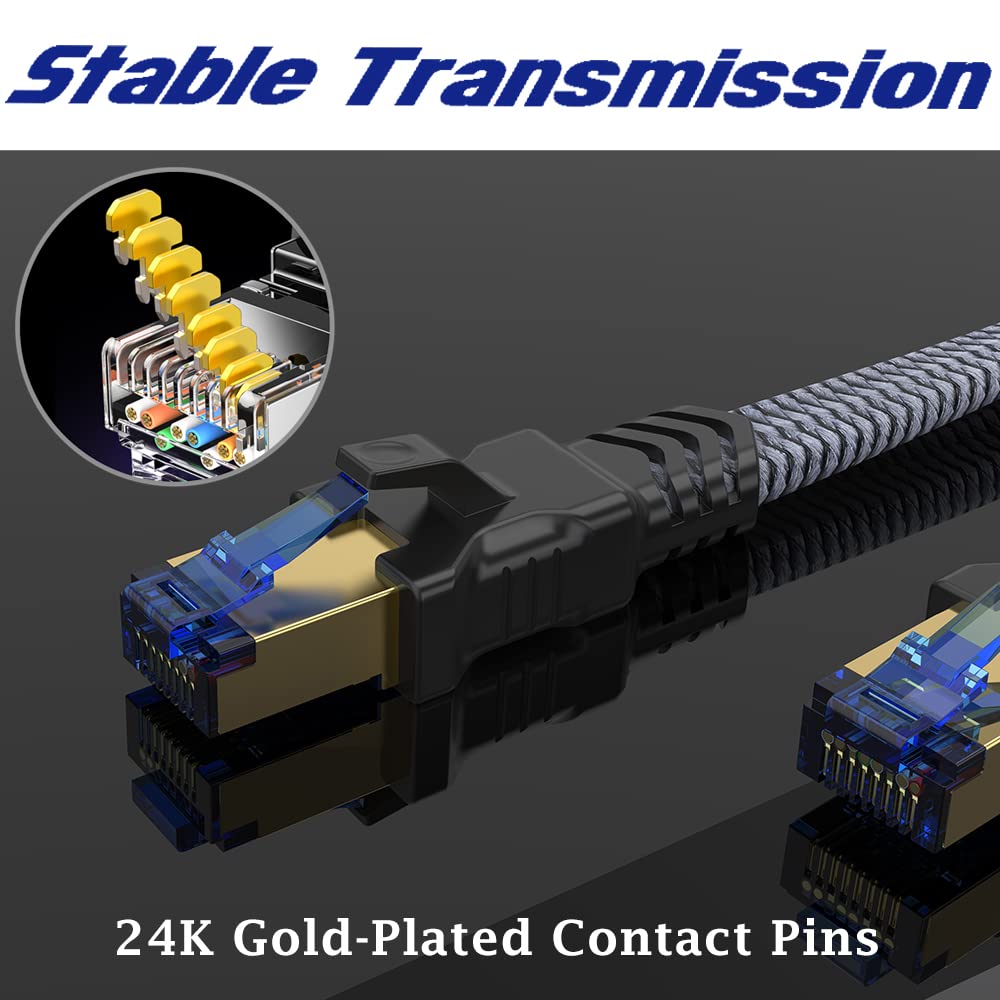 Cat 8 Ethernet Cable 100 Ft, Fastest Cat8 Internet Network Cable High Speed 2000Mhz 40Gbps S/Ftp Rj45 Cables For Gaming/Ps4/5/Mo