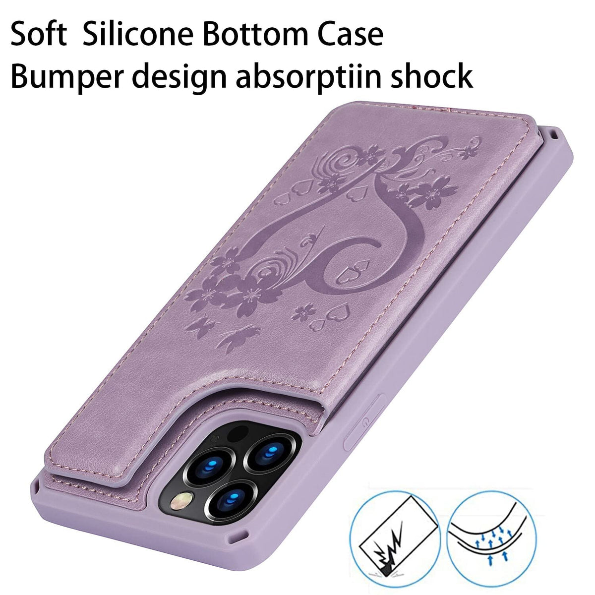 Cavor For Iphone 12/12 Pro Embossed Heart Pattern Flower Pu Leather Wallet Case With Card Holder Shockproof Cover Purple
