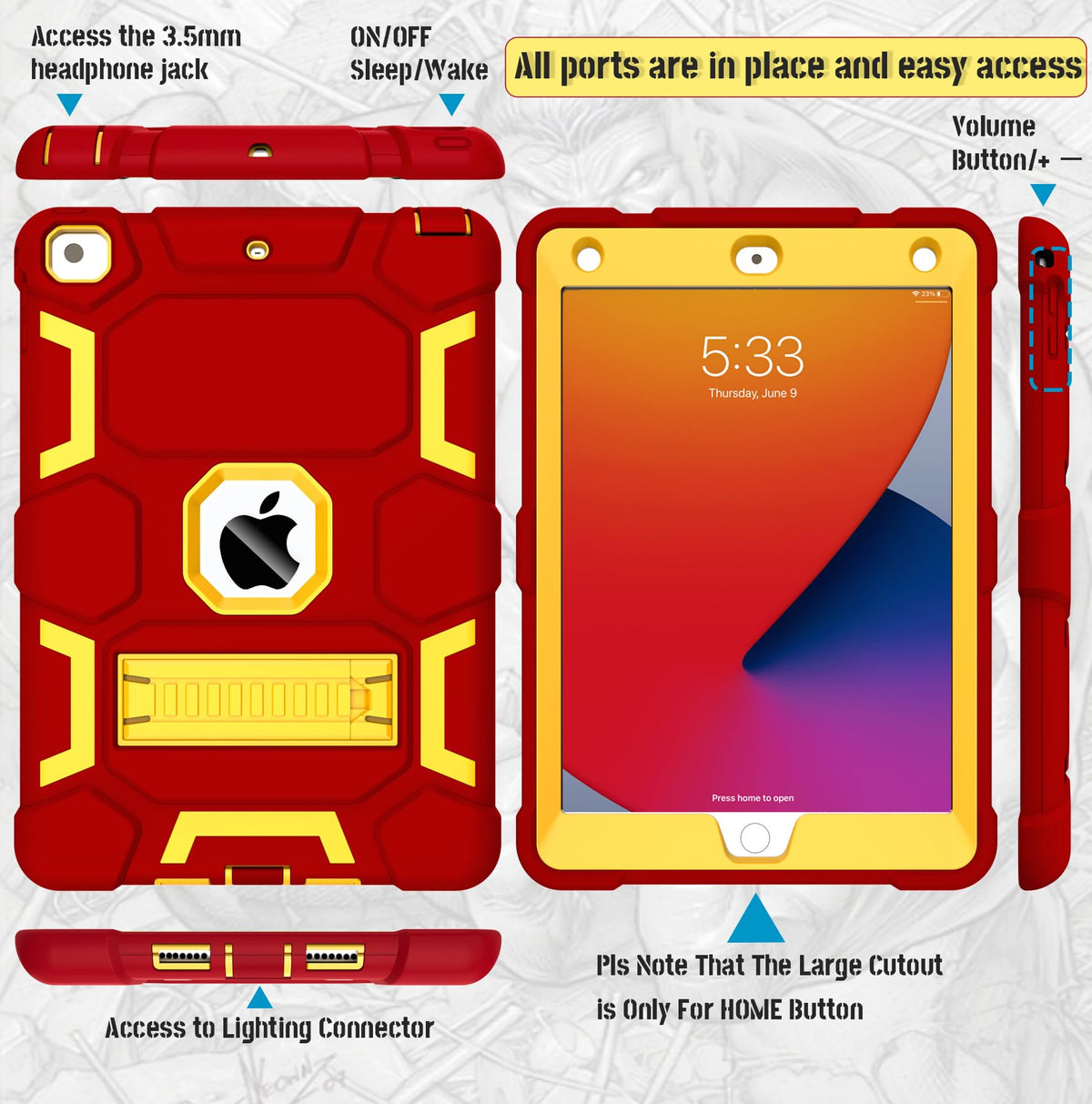 Note:&Nbsp;The Case&Nbsp;Without&Nbsp;Built-In Screen Protector. Compatible With:&Nbsp;Ipad 9.7 Inch Ipad 6Th Generation 2018, Ipad 5Th Generation 2017, Ipad Air 2 2014 Model Includes:&Nbsp;A1893 / A1954 / A1822 / A1823 / A1566 / A1567 Built-In Kickstand The Kids Case For Ipad 9.7'' 6Th/5Th Gen/ Ipad Air 2 With 2 Angles: Typing Angle &Amp; Viewing Angle. Meet The Needs Of Children To Study, Watch Videos And Playing Games, Etc. Advanced 3 Layer Protection 3-Layer Structure Design Provides 360 Degree Full-Body Protective. A Defender Of Your Ipad 9.7 Inch. A Good Choice For Kids' Daily Using. Shockproof Rugged Design The Case For 9.7 Inch Ipad Air2 Has A Special Anti-Fall Protection Design To Provide High-Grade Fall Protection For Your Ipad. Prevents Accidental Drops, Scratches, Bumps And Shock. Raised Lip For Screen And Camera Protection Raised Lip For Lens Will Protect Your Camera, The Silicone Front Shell Makes Your Ipad 9.7-Inch More Protection, So You Don'T Worry About Scratching Your Tablet When You Lay It Down. Accurate Cut-Outs Easy Access To All Buttons, Ports, Camera, Sensors, Speakers, Headphone Jack And Controls Without Removing The Ipad Case. What'S In The Package --1X Case Cover For Ipad 6Th Generation (2018 Release)/Ipad 5Th Generation (2017 Release)/Ipad Air 2 (2014 Release). Please Note: Case Only, Screen Protector And Other Accessories Are Not Included. &Nbsp; &Nbsp;
