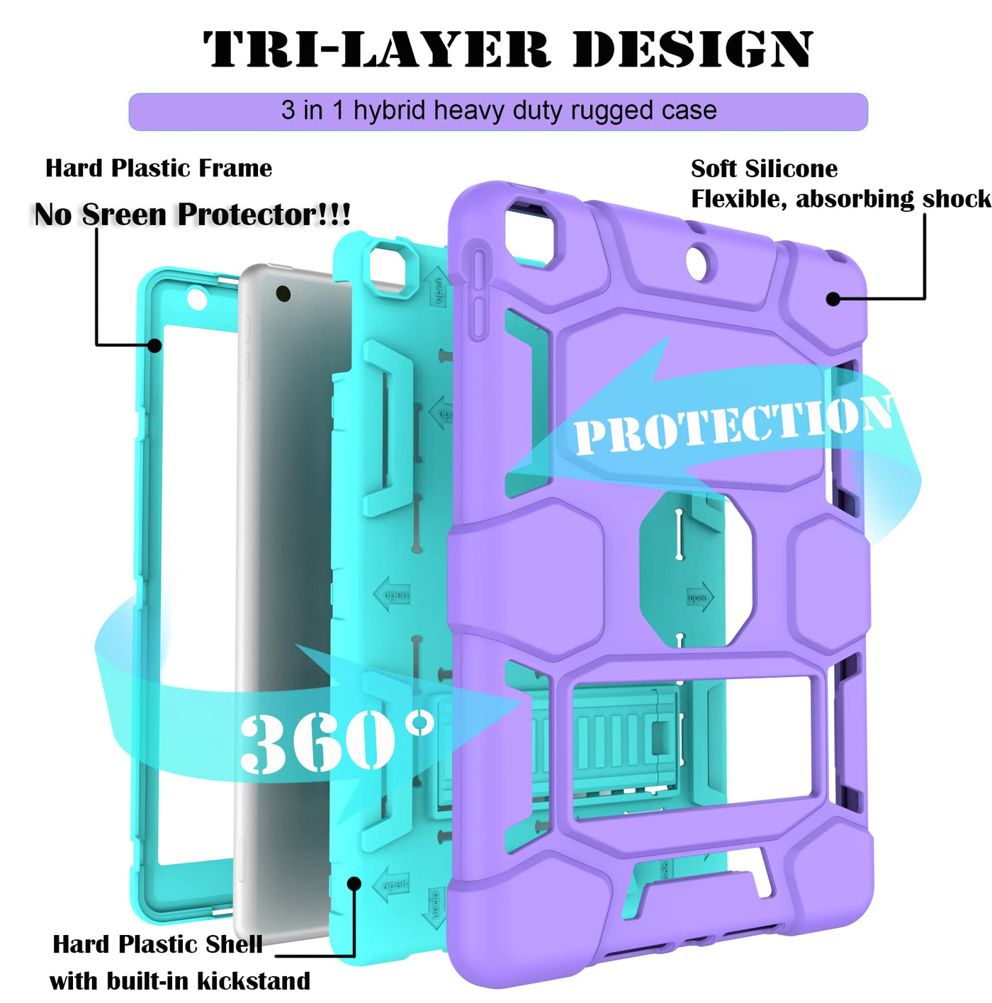 3 In 1 Shockproof Kickstand Protective Case Cover Compatible Ipad Models: Ipad 9Th Generation 2021 (Model Number: A2602/ A2603/ A2604/ A2605) Ipad 8Th Generation 2020 (Model Number: A2270 / A2428 / A2429 / A2430) Ipad 7Th Generation 2019 (Model Number: A2197 / A2198 / A2200) Advanced 3 Layer Protection Top Pc Frame---Anti-Scratch; Inner Pc Bumper Lining----Protect From Heavy Dust; Soft And Durable Silicone Outer Shell---Effectively Release Shock. Hands-Free Kickstand Feature Different Viewing Positions (Portrait View &Amp; Landscape View) To Adjust For Comfortable Movie-Watching And Keyboard-Typing Positions.&Nbsp; You Can Easily Watch Movies, Videos Or Make Video Calls With Other People In A Landscape Mode. Simple And Practical. Raised Lip For Screen And Camera Protection Raised Lip For Lens Will Protect Your Camera, The Silicone Front Shell Makes Your Ipad 10.2-Inch More Protection,&Nbsp; So You Don'T Worry About Scratching Your Tablet When You Lay It Down. Accurate Cut-Outs Easy Access To All Buttons, Ports, Camera, Sensors, Speakers, Headphone Jack And Controls Without Removing The Case.&Nbsp; What'S In The Package --1X Case Cover For New Ipad 9Th Generation (2021 Release)/Ipad 8Th/7Th Generation (2020/2019 Release). Please Note: Case Only, Screen Protector And Other Accessories Are Not Included.