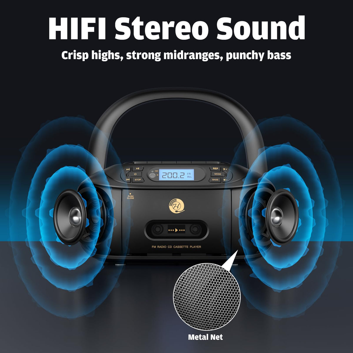 Cd Cassette Player Combo, Hernpark Rechargeable Boombox With Bluetooth 5.1, Tape Recording, Fm Radio, Super Bass, Stereo Sound,