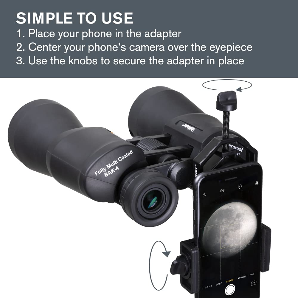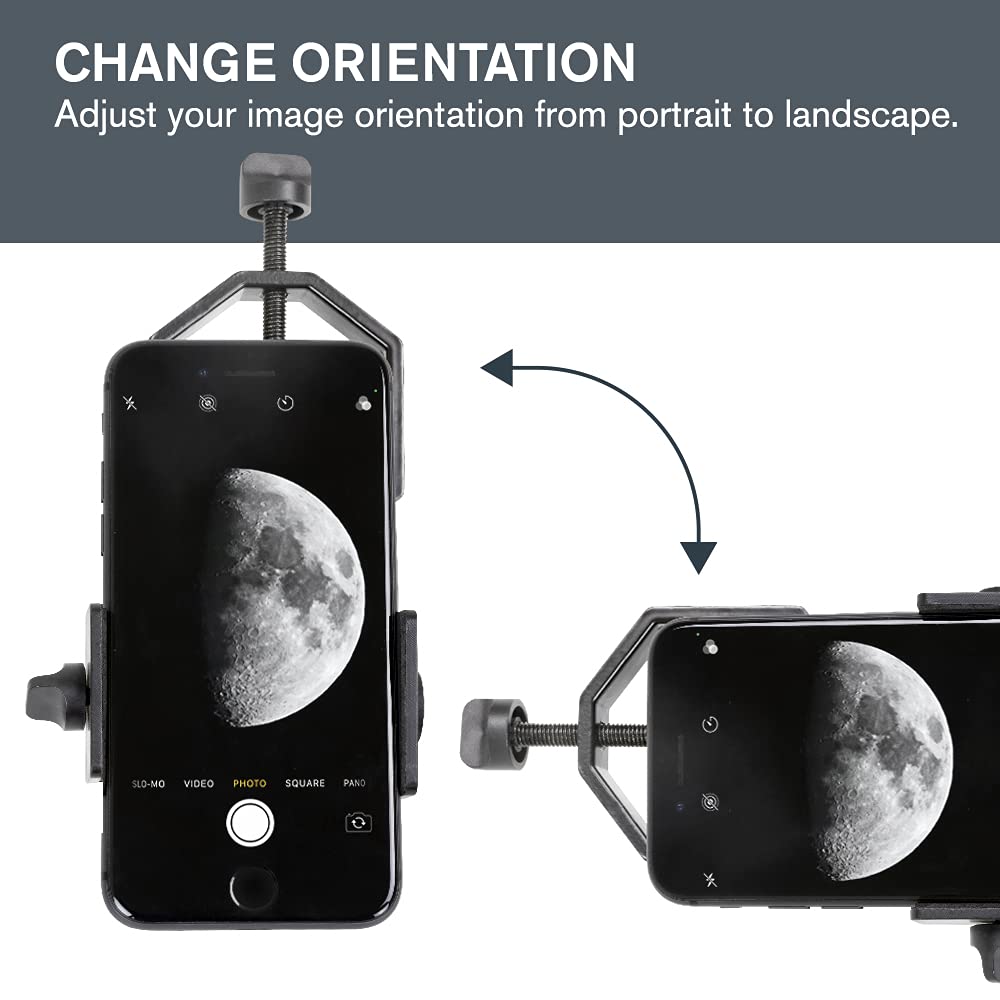 The Smartphone Adapter Is A Great First Step Into The World Of Astroimaging Or Digiscoping. The Universal Adapter Enables You To Capture Sharp, Detailed Images And Video In Seconds. The Adapter Fits Any Eyepiece From 29Mm To 45Mm In Diameter Including Telescopes With 1.25-Inch Eyepieces, Spotting Scopes, Monoculars, And Binoculars. It Is Fully Adjustable And Can Fit Any Smartphone-Usually With The Case Still On. If Multiple People Want To Capture A Shot Through Your Optic, The Smartphone Adapters Simple Clamp Makes It Easy To Remove One Device And Replace It With Another In Seconds. The Smartphone Adapter Is A Great Choice For Star Parties And Group Bird Walks Where Everyone Wants Their Own Shot Of The Action. From Start To Finish, The Process Only Takes About 30 Seconds. If You Switch Phones, Eyepieces, Or Optical Instruments, You Will Need Only Slight Adjustments To Re-Center The Camera Over The New Eyepiece. You Can Also Switch Your Image From Portrait To Landscape Simply By Turning The Padded Eyepiece Clamp And Realigning Your Phone With The Eyepiece. The Adapter Is Small And Compact For Easy Transport.