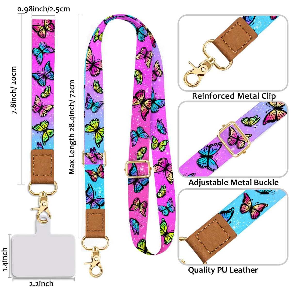 Cell Phone Lanyard Crossbody With Wrist Strap, Cute Butterfly Phone Lanyards For Around The Neck Wristlet Adjustable Phone Strap