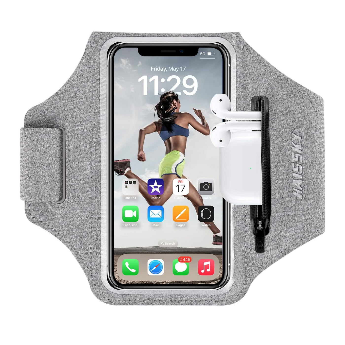Cell Phone Running Armband With Earbuds Zipper Pocket Armband Case Running Holder For Iphone 16 Pro Max/15/14 Pro Max/13/12 /11