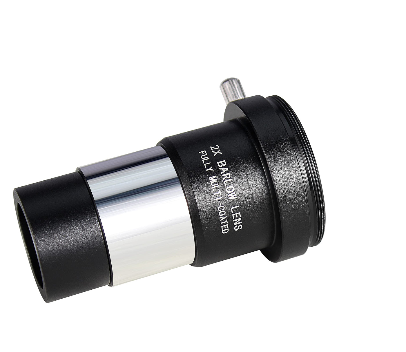 Q: Can I use the 2x Barlow lens with other eyepieces?A: Yes, the included 2x Barlow lens can double the magnification of any 1.25-inch threaded eyepiece. It is compatible with most standard eyepieces, enhancing your viewing experience by offering greater magnification options.