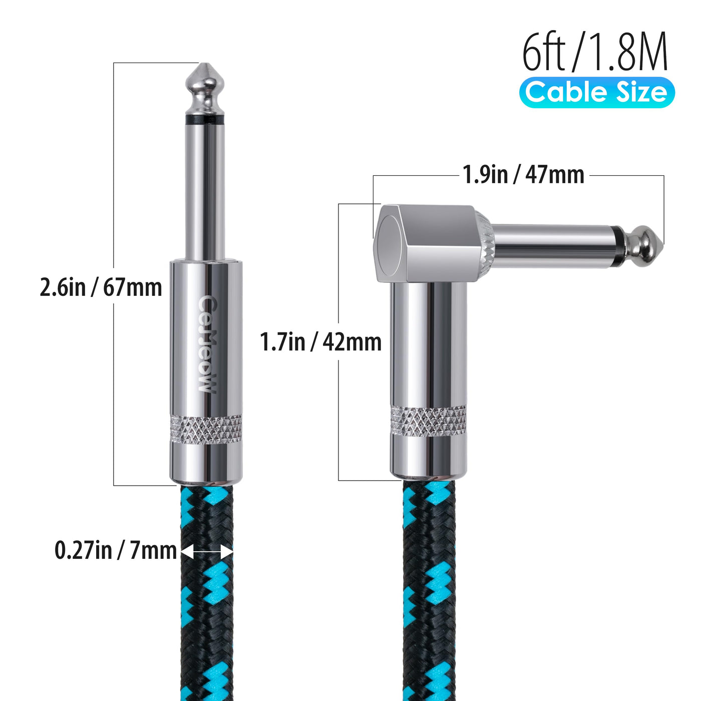 Straight To Right-Angle Design: Cemeow Guitar Cable Uses A 1/4-Inch Straight To Right Angle Nickel-Plated Plug. Compared To The Straight Plug, The Right-Angle Design Shortens The Signal Transmission Path And Reduces Signal Loss, Resulting In Clearer Sound Quality And Richer Details. In Addition, The Right-Angle Cable Has A More Compact Shape, Making It Suitable For Use In Narrow Spaces | Low Noise: Cemeow Guitar Cord Uses Coaxial Cable, Which Far Exceeds Other Cable Structure Designs In Shielding Performance And Frequency Response Bandwidth. It Uses High-Purity 22Awg Oxygen-Free Copper (Ofc) Conductive Copper Wire To Enhance Signal Transmission And Stability. The Instrument Cable Also Features A 6-Layer Protective Design To Maximize Physical Noise Reduction And Anti-Interference Performance | Wide Application: Cemeow Instrument Cable Is Suitable For Instruments And Equipment With A 6.35Mm Interface Diameter, Such As Electric Guitars, Basses, Mixers, Amplifiers, Speakers, Keyboards, Effects Pedals, Electronic Pianos Or Drums, Decoders, Equalizers, And More. It Is Versatile For Various Scenarios | Durable: Compared To Other Pvc Cables, Cemeow Guitar Cable Adds An Additional Layer Of Woven Nylon Protection Outside The Pvc Sheath, Providing Better Wear Resistance And Preventing Twisting And Tangling. The Plug Part Features A Rotatable Copper Shell Protective Cover And An Added Rubber Gasket Inside To Enhance The Stability Of The Soldering Points | 24-Month Guarantee: Please Contact Us In Order To Receive A 24-Month Product Replacement Guarantee In Case Of Problems. We Are There For You At Any Time
