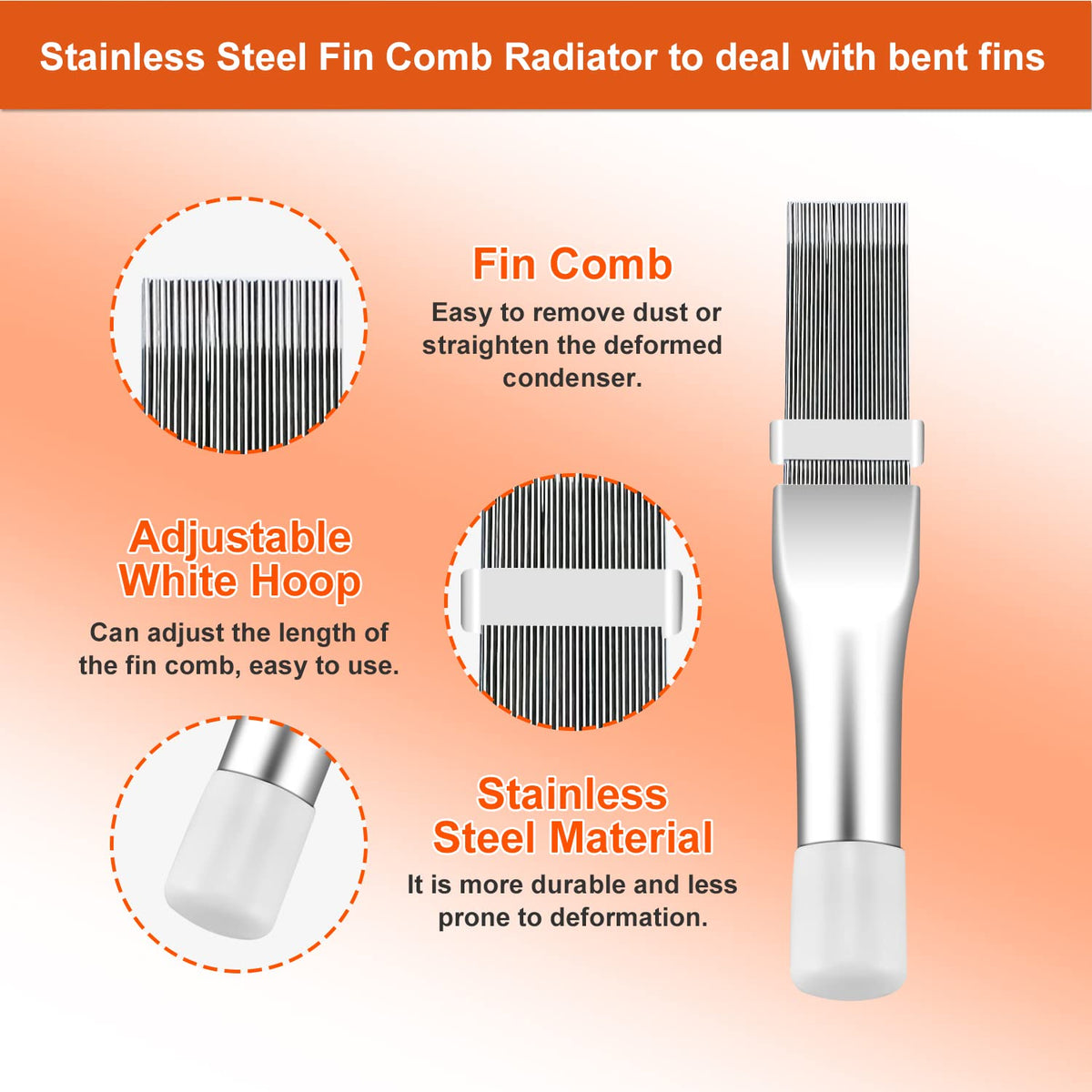 ?What Is Included? ?:Ac Condenser Fin Comb Tool Set Includes 1 Fcr6 Ring Fin Comb,1 Metal Radiator Fin Comb And Plastic Air Conditioner Fin Comb.Regularly Use The Radiator Cleaning Brush To Clean The Equipment, Which Can Improve The Efficiency Of The Air Conditioner. Efficiency Is Very Important For Air Conditioners. When You Are Using It, You Can Pull The Bracket Inward And Insert The Curved Head Of The Brush Inward To Clean Dust Or Straighten The Deformed Condenser.