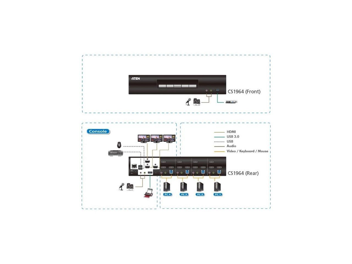 Q: Is the ATEN CS1964 suitable for gaming or high-performance tasks?A: Absolutely! The ATEN CS1964 KVMP Switch is designed for high-performance tasks, including gaming and graphic design, thanks to its 4K resolution support and fast USB 3.0 data transfer speeds.