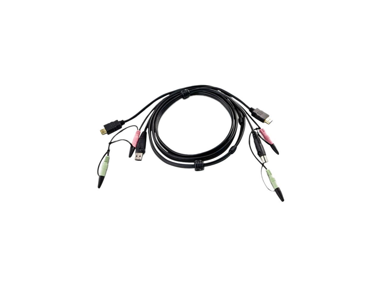 Q: What is the length of the ATEN USB HDMI KVM Cable?A: The ATEN USB HDMI KVM Cable is 6 feet long, providing ample reach for connecting your devices.