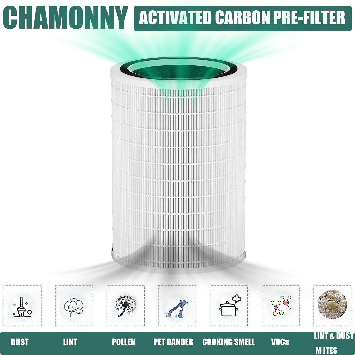 Q: Does the CHAMONNY 12010 Filter reduce odors?A: Yes, the CHAMONNY 12010 Filter helps reduce odors. It captures harmful toxins and VOCs, creating a fresher indoor environment.