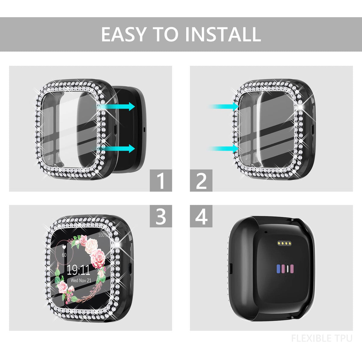 ?Responsive Screen Protector Case?: Compatible With Fitbit Versa 2/Versa 2 Special Edition, Not For Fitbit Versa 1/Versa 3); 10 Packs Fitbit Versa 2 Screen Protector Case Soft Tpu Bumper Cover With Sparkling Crystals. Eye-Catching And Protective Sparkling Fitbit Versa 2 Case Adorned With Over 100 Sparkling Cubic Zirconia Crystals, It Allows Your Watch To Double As A Handy Gadget And Glamorous Jewelry. | ?Full Protection?: Soft Tpu Material With Flexible And Shock-Absorbent Layer, This Full Coverage Protective Case Protects Your Fitbit Versa 2 Smartwatch Screen And Four Side From Drop And Scratches, Shatter, Collision Or Other Potential Damage. | ?Perfect Fit & Easy To Install?:Made Of All-Around Soft & Flexible Tpu, Waterproof, Easy To Install And Take Off, You Don