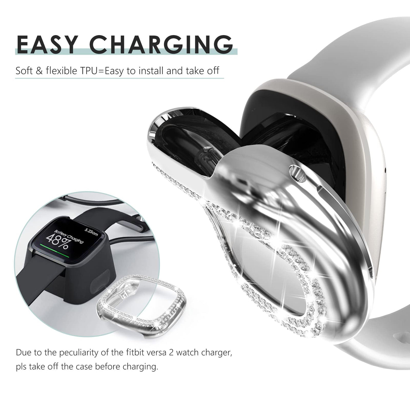 ?Responsive Screen Protector Case?: Compatible With Fitbit Versa 3, (Not For Fitbit Versa 1/Versa 2); 10 Packs Fitbit Versa 3 Screen Protector Case Soft Tpu Bumper Cover With Sparkling Crystals. Eye-Catching And Protective Sparkling Fitbit Versa 3 Case Adorned With Over 100 Sparkling Cubic Zirconia Crystals, It Allows Your Watch To Double As A Handy Gadget And Glamorous Jewelry. | ?Full Protection?: Soft Tpu Material With Flexible And Shock-Absorbent Layer, This Full Coverage Protective Case Protects Your Fitbit Versa 3 Smartwatch Screen And Four Side From Drop And Scratches, Shatter, Collision Or Other Potential Damage. | ?Perfect Fit & Easy To Install?:Made Of All-Around Soft & Flexible Tpu, Waterproof, Easy To Install And Take Off, You Don