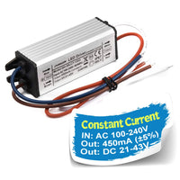 Constant Current Led Drivers Are Known For Their Easy Installation And Are Preferable Because They Supply The Same Amount Of Current Regardless Of How Many Or Few Lights Are Connected To It. Leds Work Safest And Most Efficiently With A Constant Current Led Driver.For Many Led Applications, It Is Desirable To Utilize Constant Current Drivers. Constant Current Led Drivers Are Ideal In That They Offer Designers More Control For Applications, Providing Them With The Ability To Design Displays With Almost No Variation In Brightness Across The Display.Chanzon Constant Current Led Drivers Are High Quality.All Of Our Power Supply Are Ce Certified In Order To Provide Best Support To Your Business!Ce :Complies With All The Essential Health And Safety Requirements From All The Directives That Applies To Our Products.With Certain Product Quality Control &; Verification Process.Features:Product Name: Constant Current Led Driver (Ac-Dc)Brand: Chanzonhigh Quality: Isolation Protection With Ce Certificate, No Noise, Long Life Spaninput: Ac 100-240V 50/60Hzoutput Current: 450Ma (Constant)Output Voltage: 21-43Vefficiency:More Than 88%Size: 78.3*25.2*21.3 (Mm) / 3.08*0.99*0.84 (Inch)Net Weight: 63.4G / 2.24Ozhigh Power Factor(Pfc):More Than 95%Kindly Reminder:Please Be Aware Of The Positive (Anode +) And Negative (Cathode -) Of Led Products, Install Accordingly To Avoid Damage.Do Not Exceed The Maximum Voltage Or Current,Otherwise The Led Diode May Burn Out.For Ip67 Waterproof Led Drivers, Be Able To Use In Wet & &; Rain Eviroment But Avoid Underwater Usage.Search For ''Chanzon Constant Current Led Driver'' For More Our Led Drivers (300Ma,450Ma,600Ma,900Ma,1500Ma,3000Ma,4500Ma,6000Ma).