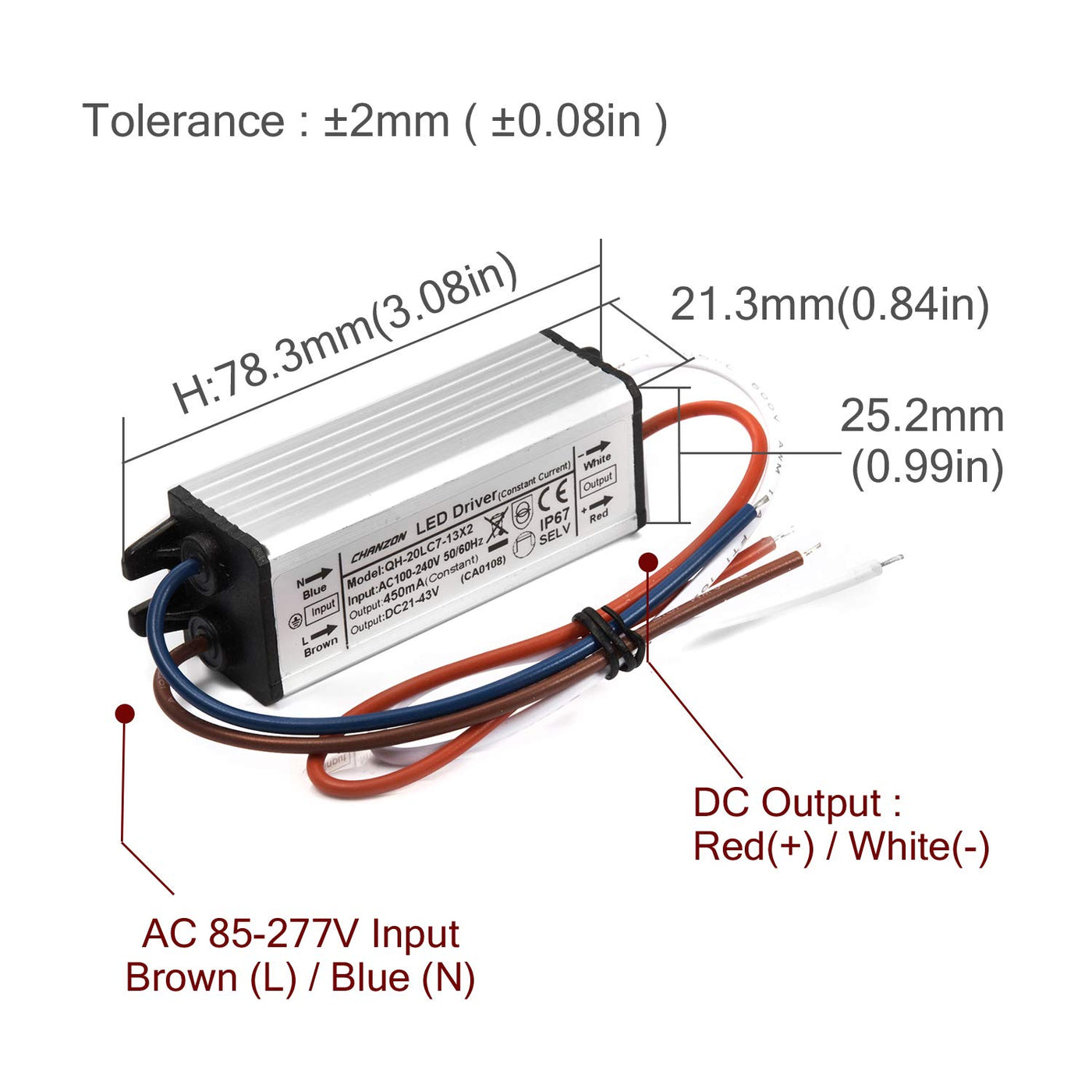 Chanzon Led Driver 450Ma (Constant Current Output) 21V 43V (Input 100 240V Ac Dc) (7 13) X2W Ip67 Waterproof Power Supply 450 Ma