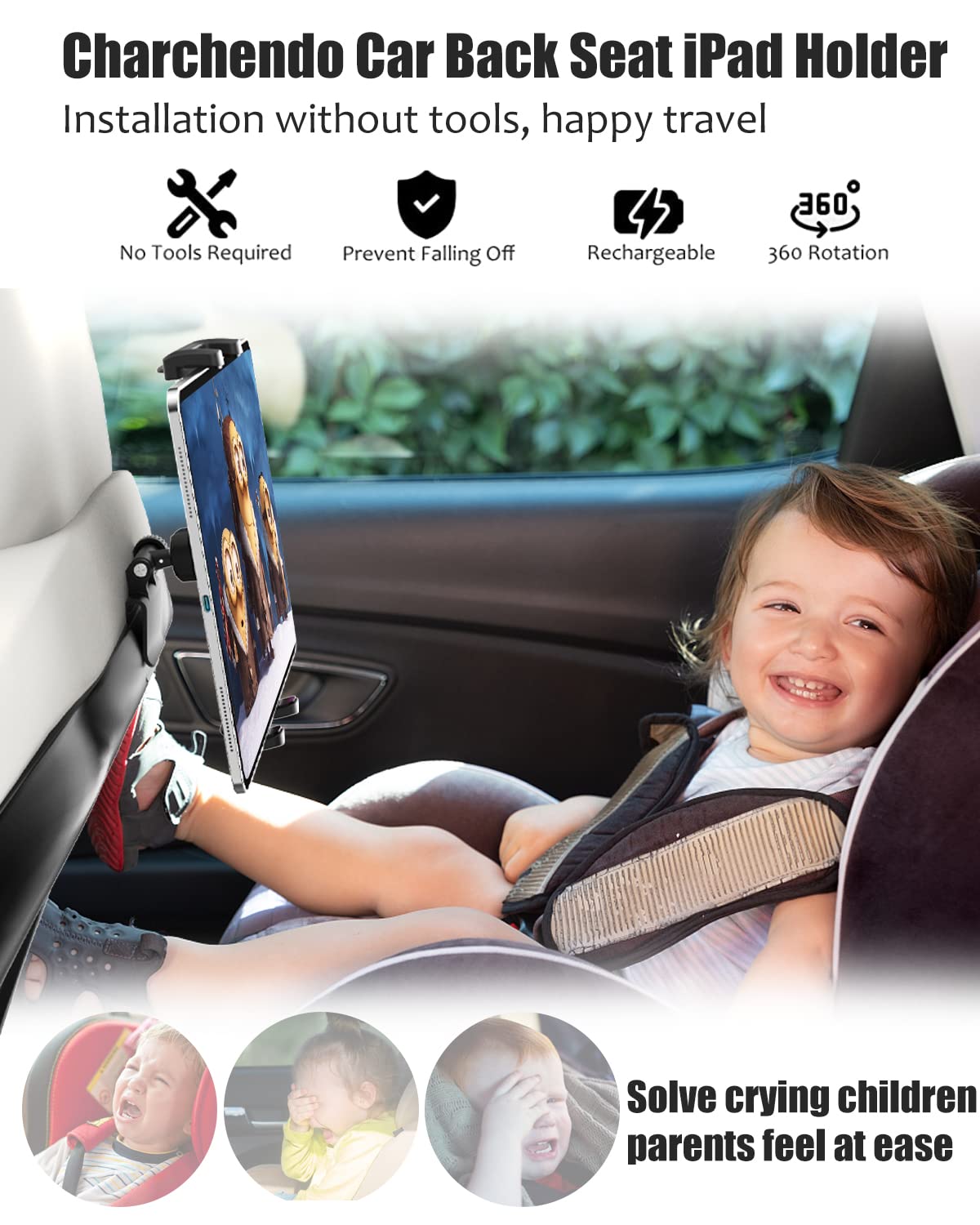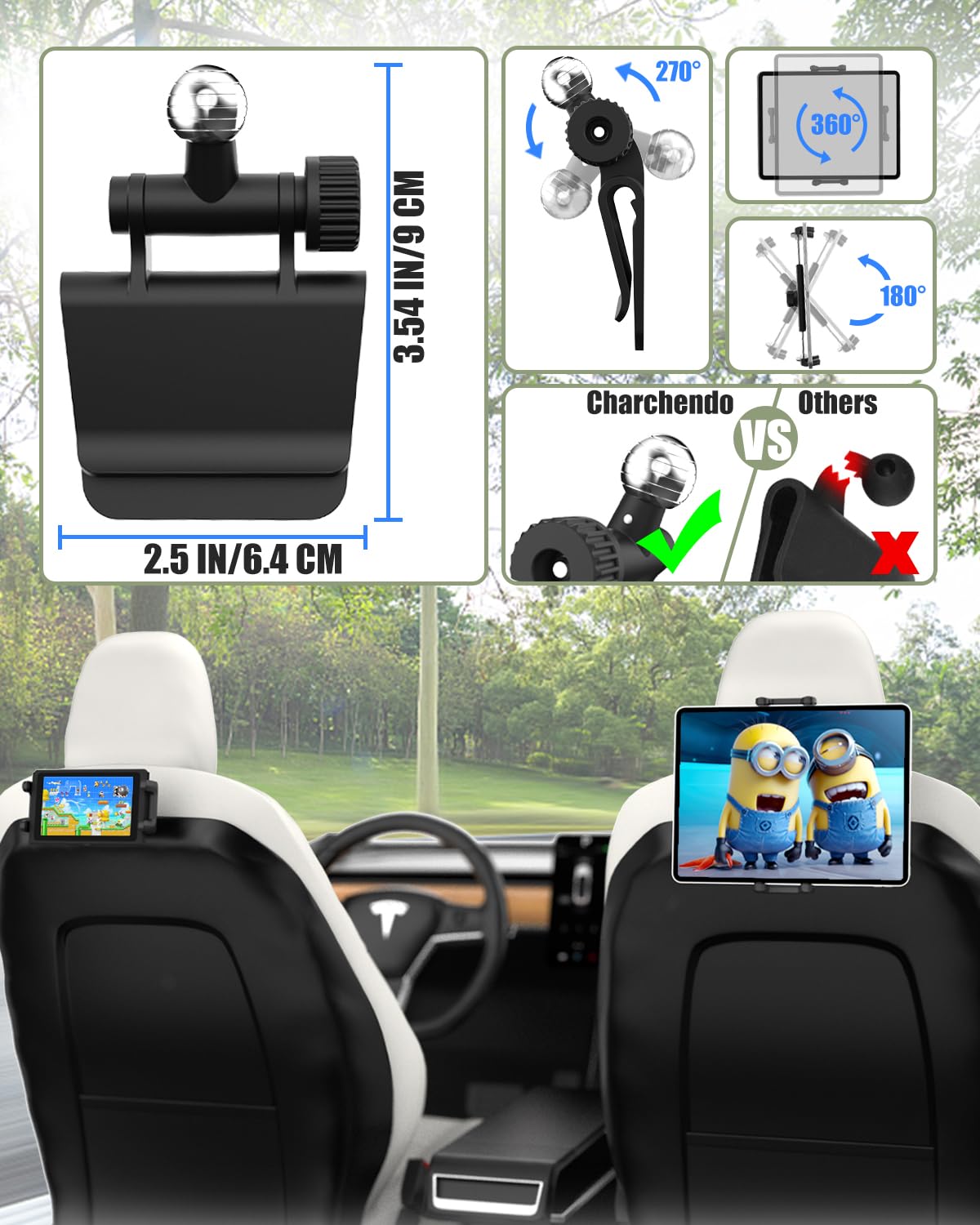 Charchendo For Tesla Model Y Model 3 Headrest Tablet Mount With Metal Ball Head Fits 4 13'' Devices, Car Back Seat Ipad Holder K
