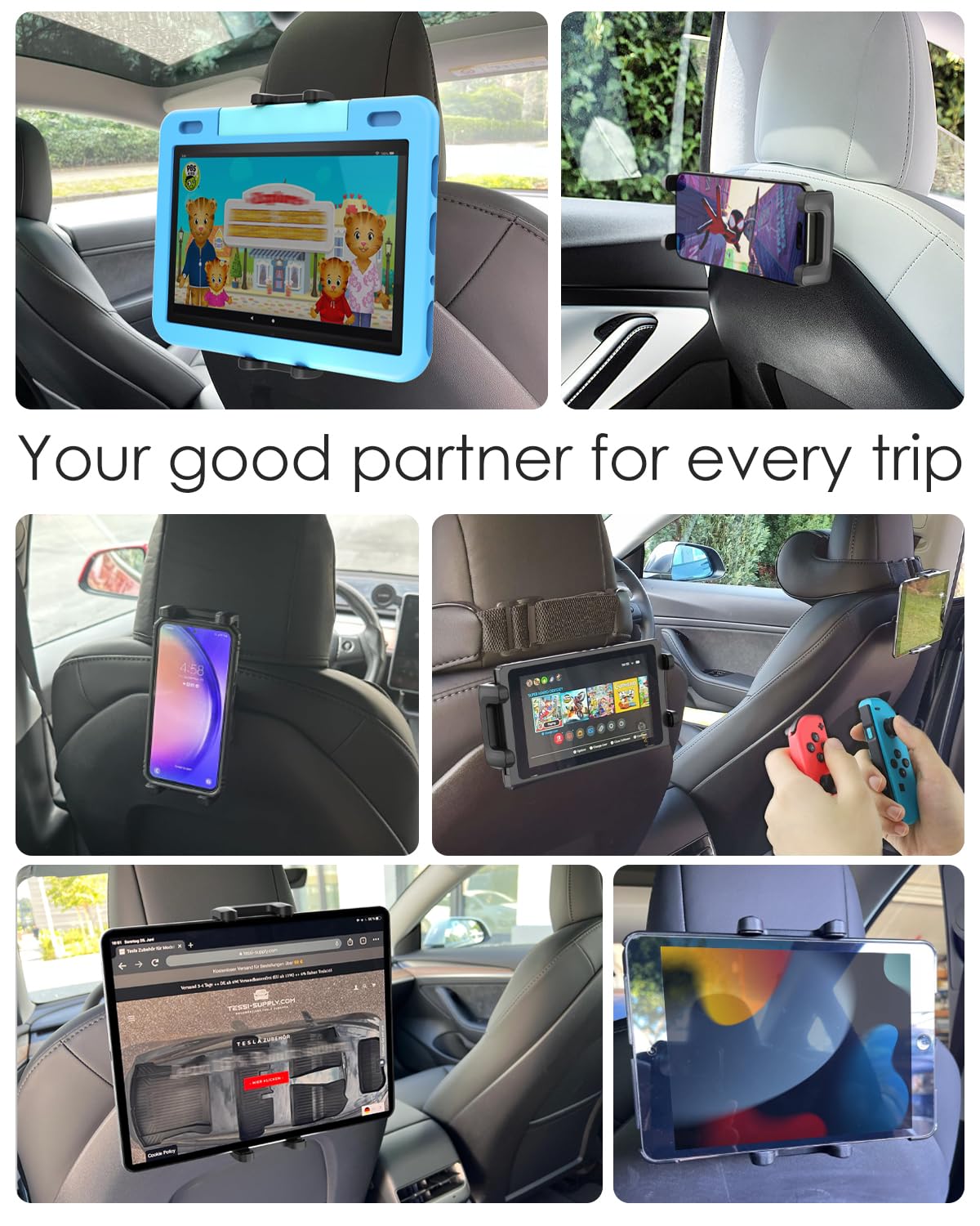 This Car Back Seat Tablet Mount For Tesla Is A Great Companion For Long Trips With Your Friends Or Kids. You Can Adjust To Your Favorite Viewing Angle To Meet Your Needs, Enjoy Watching Movies And Playing Games Hands-Free. Tesla Ipad Mount Compatible With 2016 2017 2018 2019 2020 2021 2022 2023 Tesla Model 3, 2023 2022 2021 2020 Model Y.