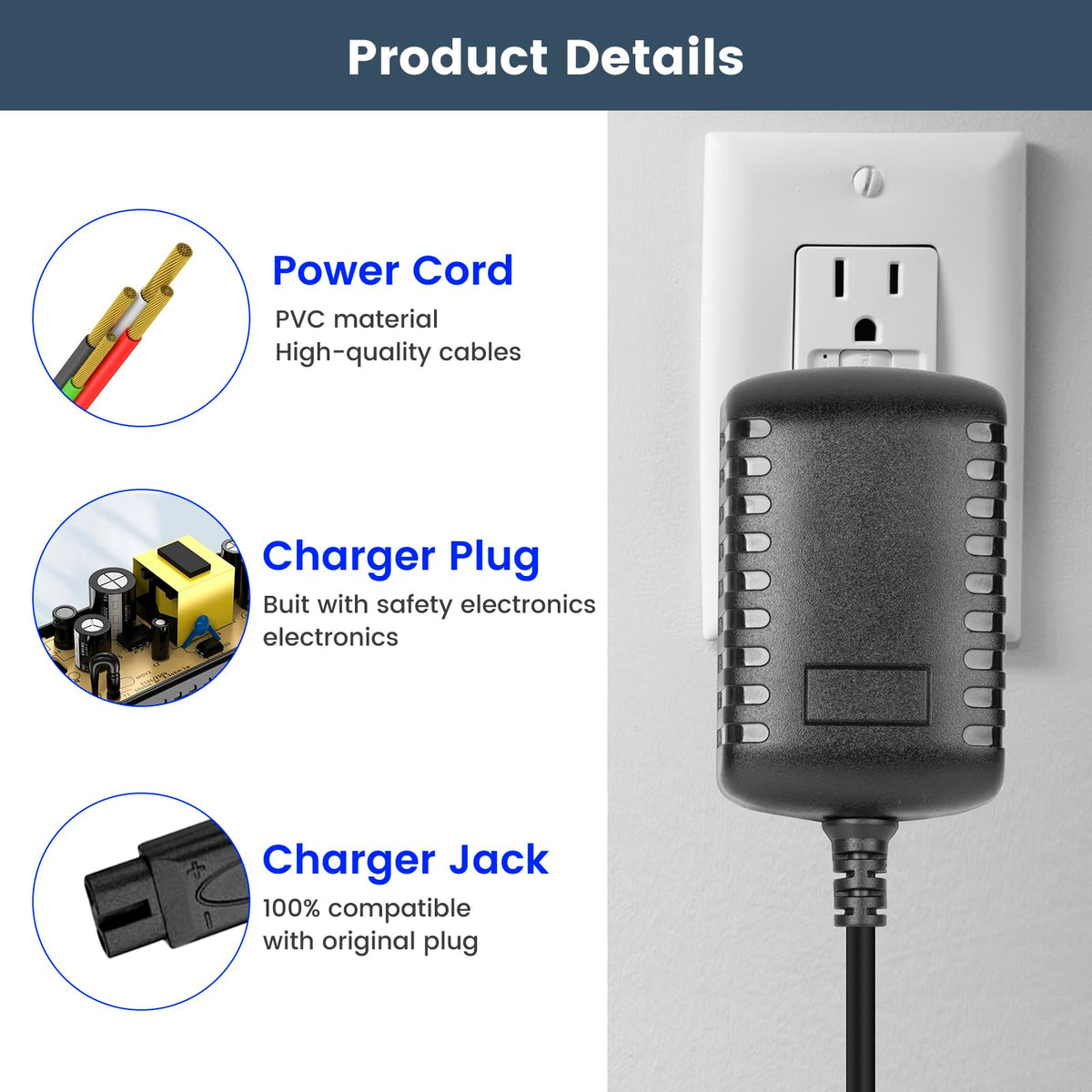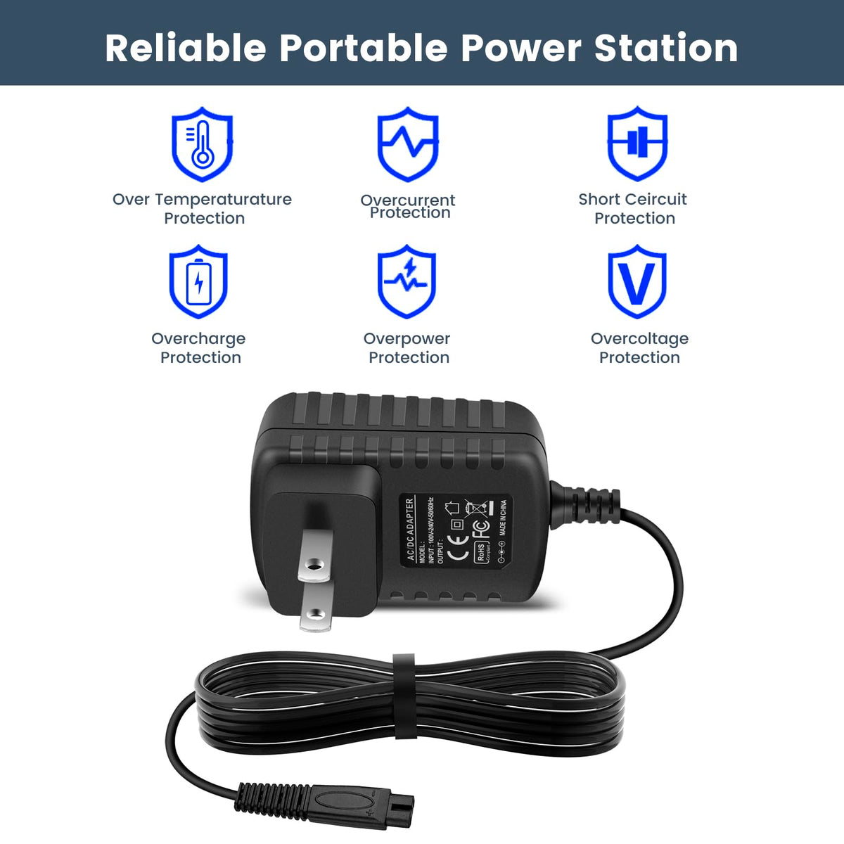 Replacement Charging Cord,Adapter Is Made It Complies With Ce, Fcc, And Rohs Standards And Has Surge Protection, Over-Current, Over-Voltage, Short-Circuit, And Temperature Protection Features,Ftis For Andis Profoil Lithium And Profoil Lithium Plus Titanium Foil Shavers Ts-1 & Ts-2.
