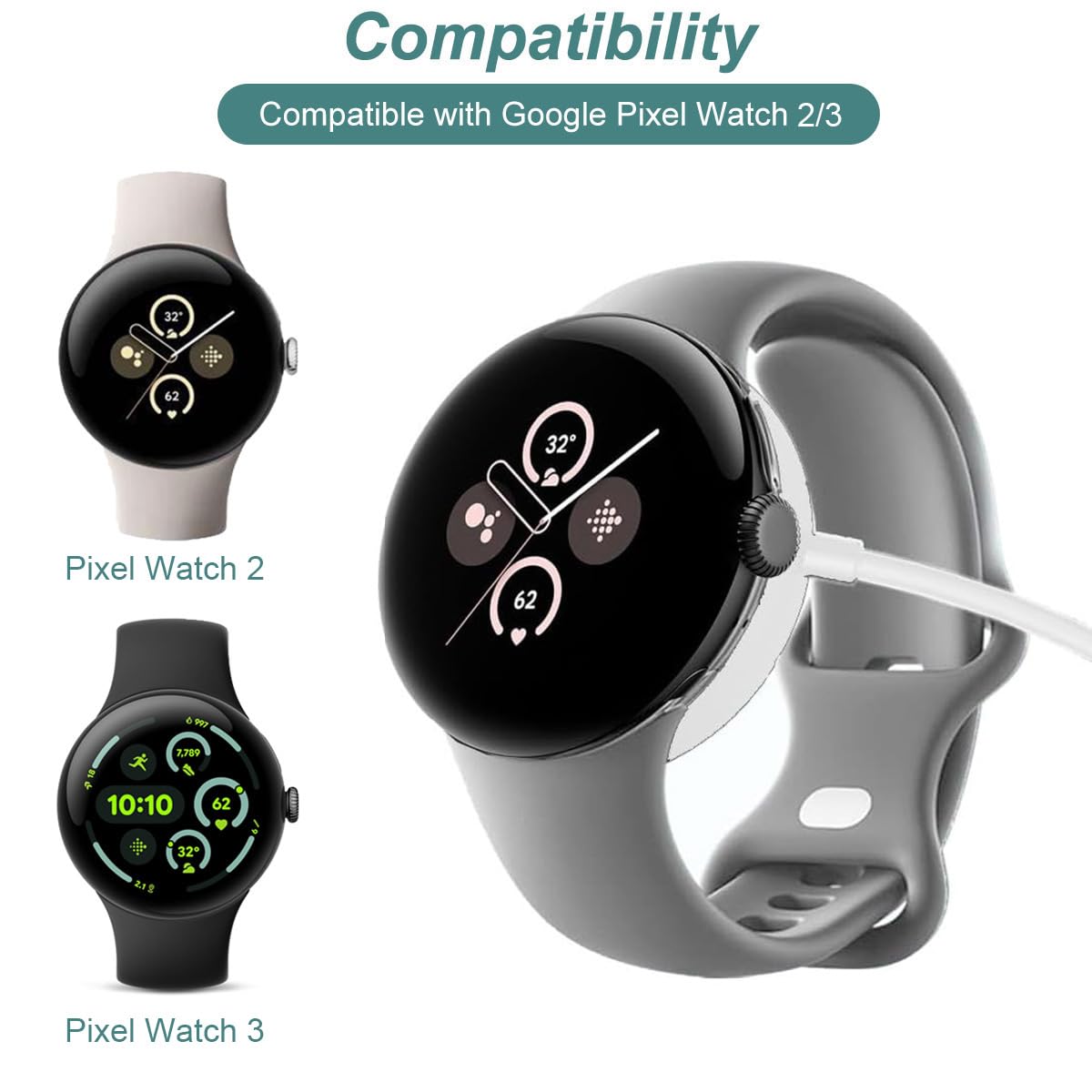 For Pixel Watch 2 & 3 Charger Compatible Device: Compatible With Pixel Watch 2 Compatible With Pixel Watch 3 Specification: Wire: Pure Copper Input: 5V/1A Cable Length: 100Cm/3.3Ft Package Includes: 2 X Charging Cable For Pixel Watch 2 & 3 (Smart Watch Is Not Included) Friendly Reminder: 1. This Charger Does Not Compatible With Pixel Watch 1St Gen