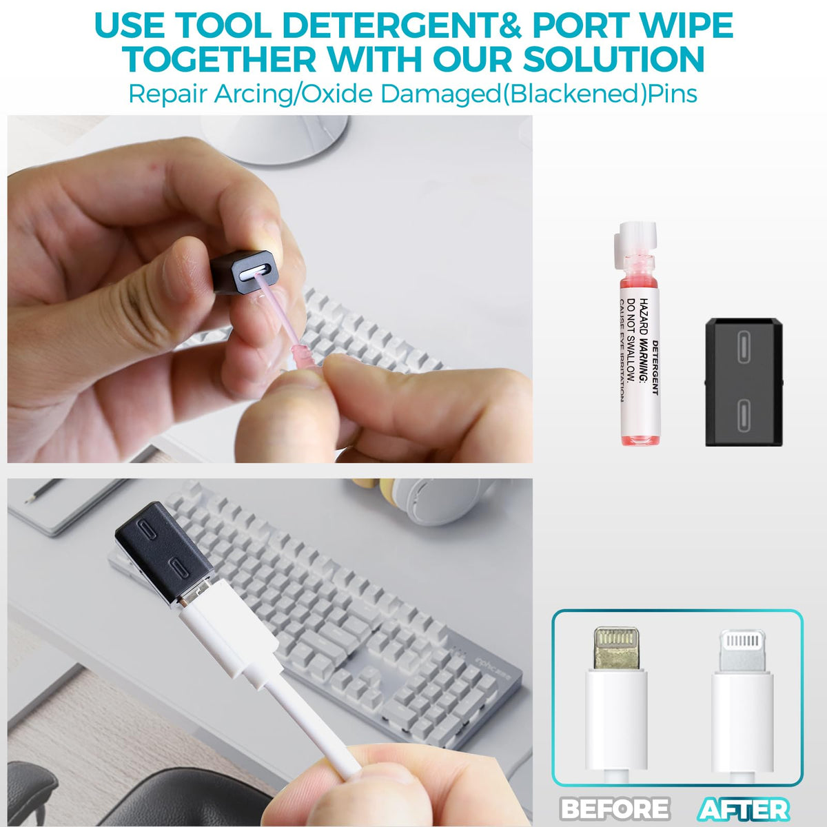 Q: How does the cleaning tool help improve charging performance?A: The tool effectively cleans dust and debris from charging ports, which can cause poor contact and charging issues. By removing contaminants, it helps restore optimal functionality and improves charging performance.