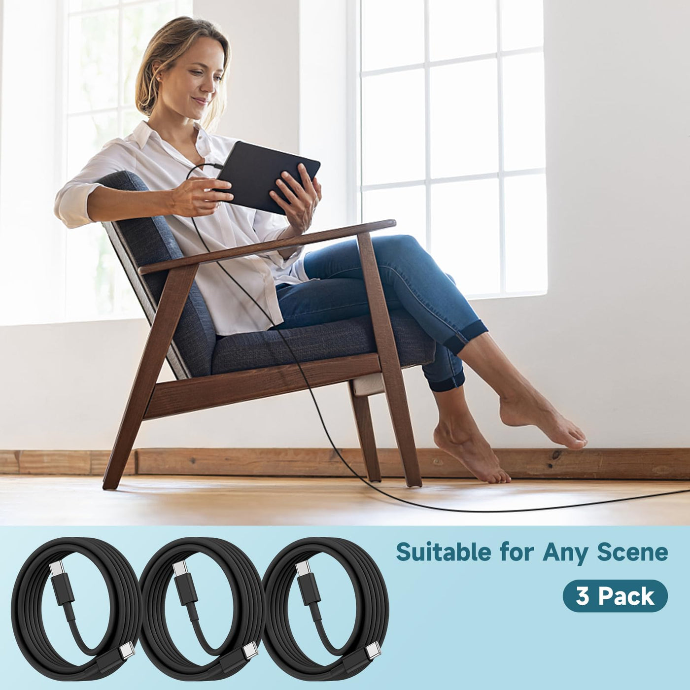 60W Usb C To Usb C Cable [3Pack] Iphone 15 Fast Charging Cable,10Ft Long Usb-C To Usbc Power Cord For Iphone 15/15 Pro/15 Plus/15 Pro Max,Macbook Pro Air/Ipad Air 4/5/Ipad Pro 12.9/11(Black)