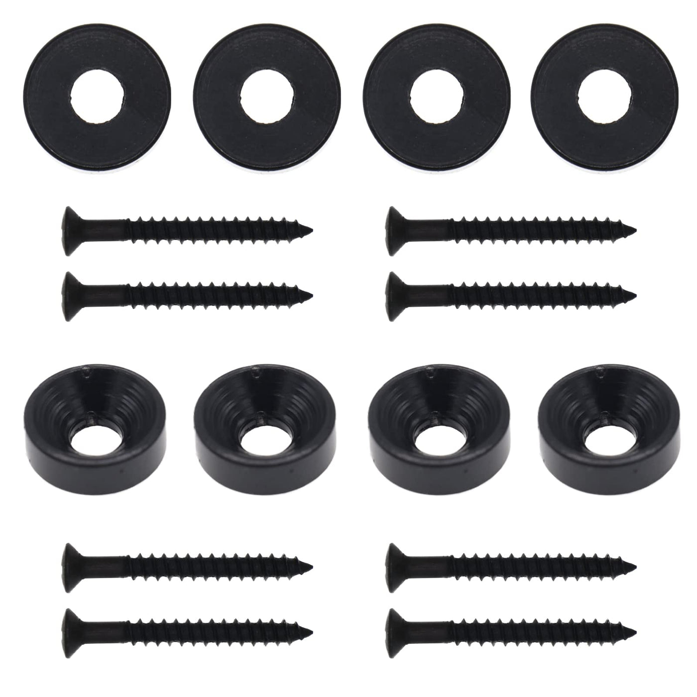 Cheerock Black Guitar Neck Joint Bushings And Bolts, 8Pcs Metal Guitar Neck Ferrules With Screws, Guitar Neck Replacement Parts