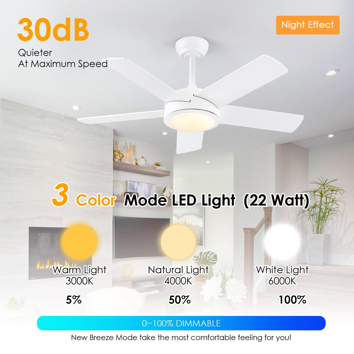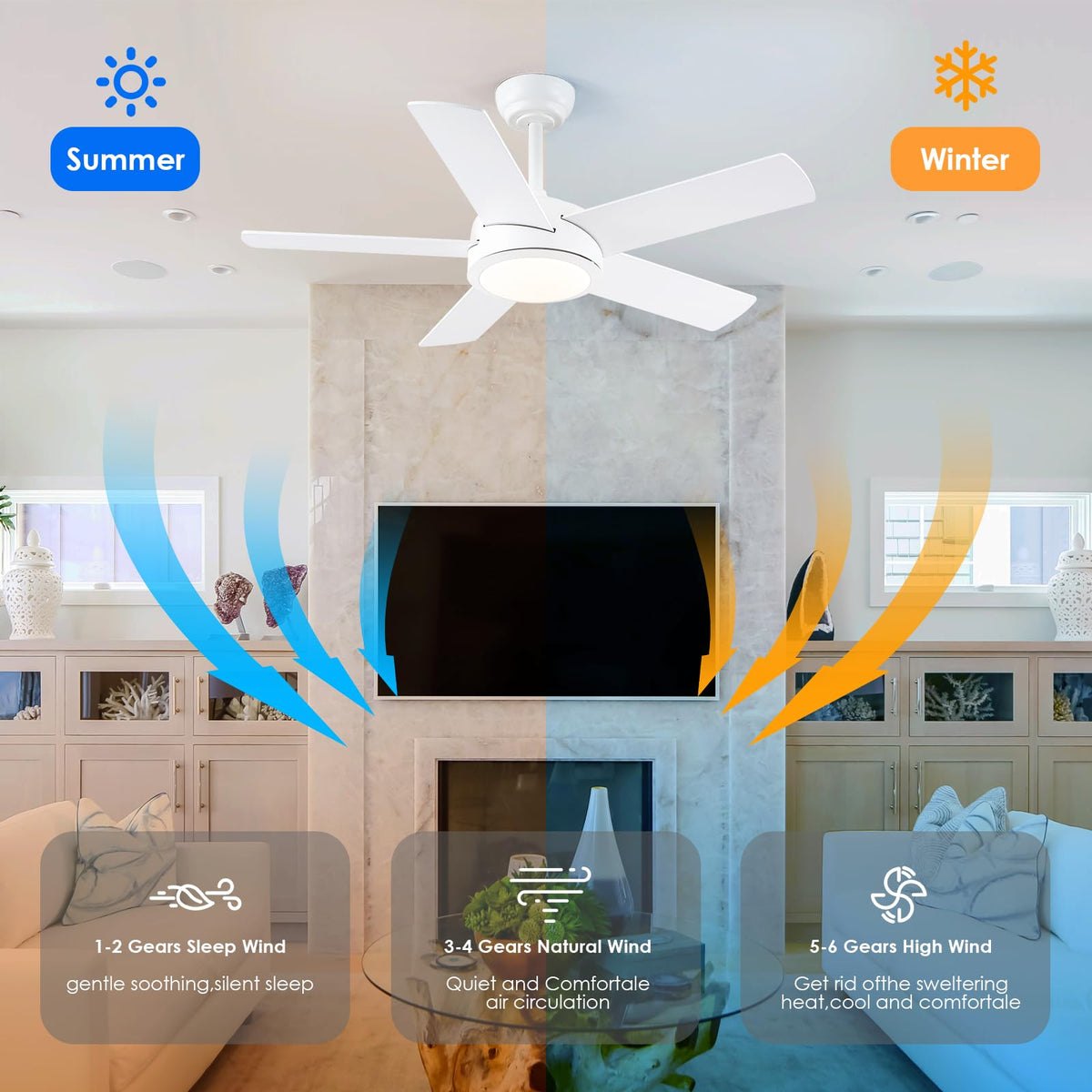 Chesur Ceiling Fans With Lights 42'' Low Profile Ceiling Fan Lights With 5 Blades, White Modern Ceiling Fan With Lights And Re