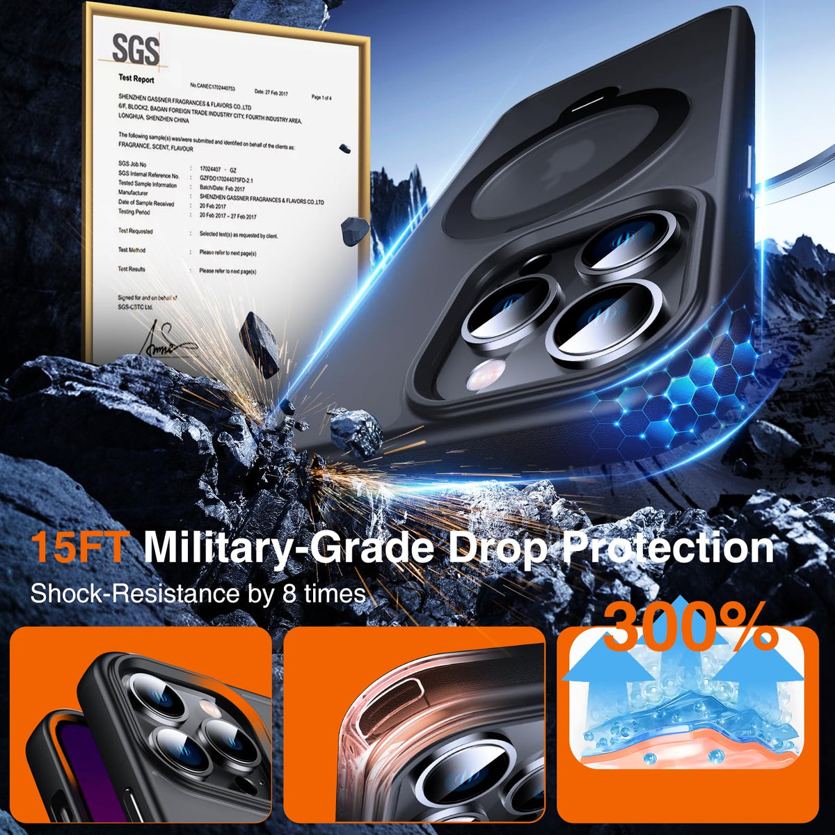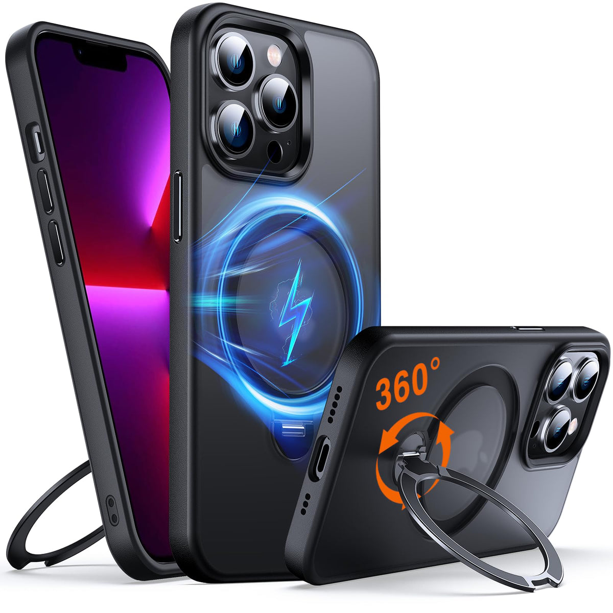 Chicfun 360 O-Ring Magstander For Iphone 13 Pro Case With Magnetic Kickstand Ring Holder [Compatible With Magsafe][360Rotate Stand Ring][Military Shockproof] Iphone 13 Pro Phone Cover Matte Black