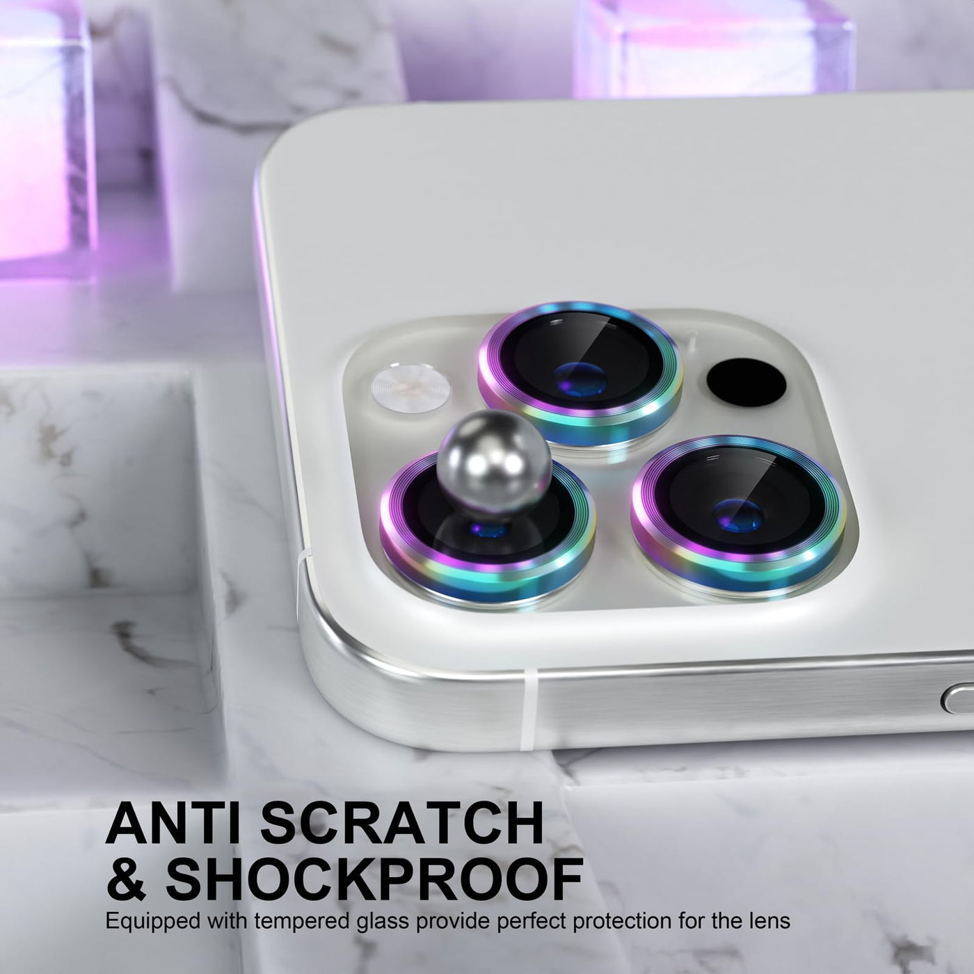 Q: What materials are used in the Choiche camera lens protector?A: The Choiche camera lens protector is made from high-quality 9H tempered glass and features a durable aviation aluminum metal ring, providing excellent protection and a stylish look.