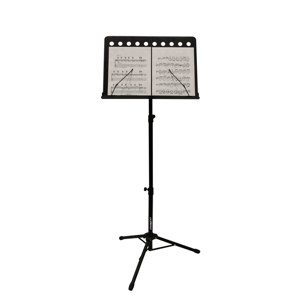 The Chromacast Pro Series Music Stand Is Perfect For The Active Player. Durable And Light Weight. Great For Music Books, Lap Tops, Phones And Tablets. The Two Tier Vertical Shaft, And Tilting Bookplate Is Perfect For Sitting Or Standing. Height Adjusts From 32'' To 58''. Metal Spring Arms Securely Hold Music And Song Books. Folds Up For Easy Transport. Chromacast Products Are Designed By Musicians For The Active Player, And Provide The Best In Affordability And Quality.