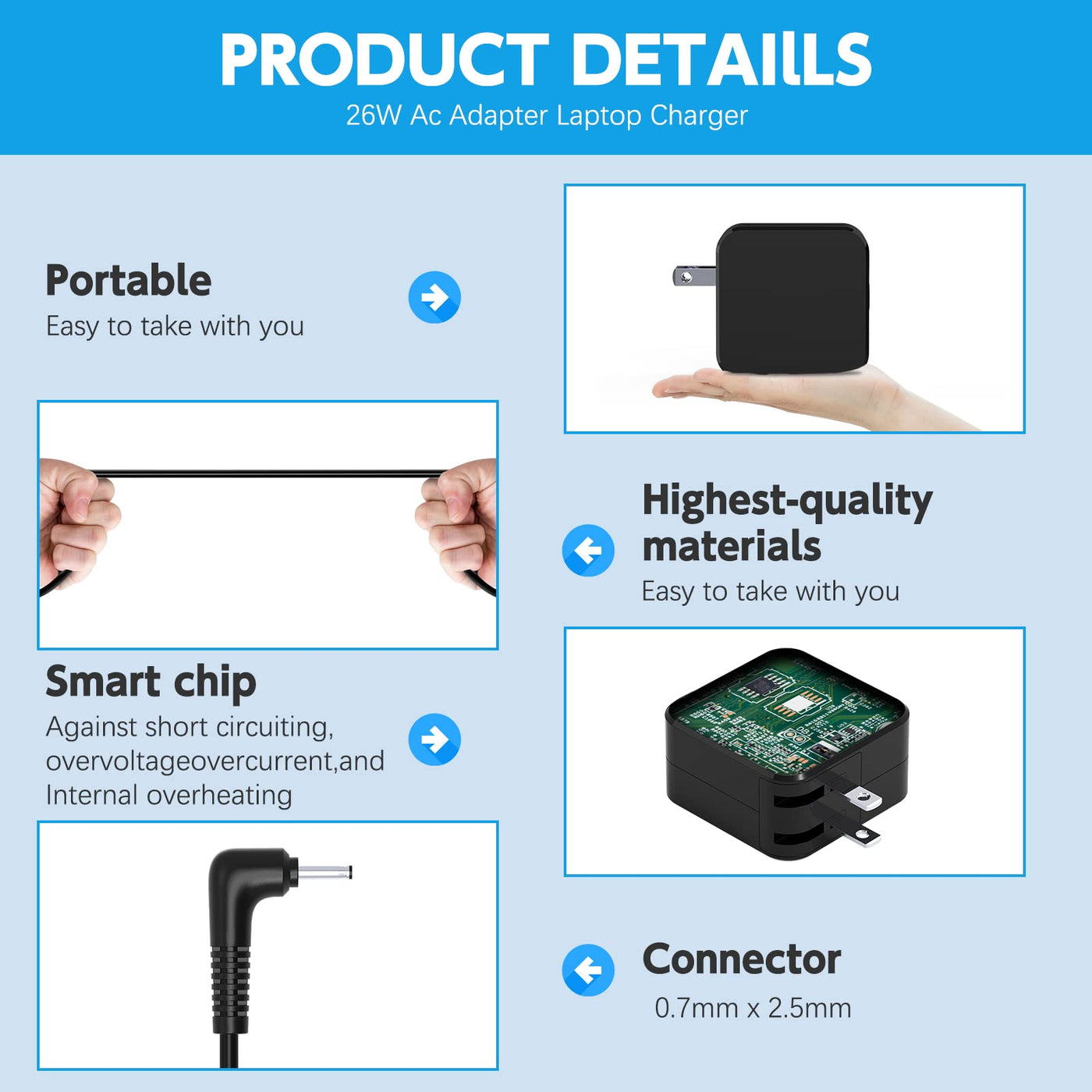 Chromebook Charger For Samsung Laptop,26W 12V 2.2A Compatible 11.6' Chromebook 3 2 500C 503C Xe500C Pa 1250 98 Xe500C13 Xe501C13 Xe303C12 Xe500C12 Xe503C12 Xe503C32 Ad 2612Aus Ac Adapter Power Supply