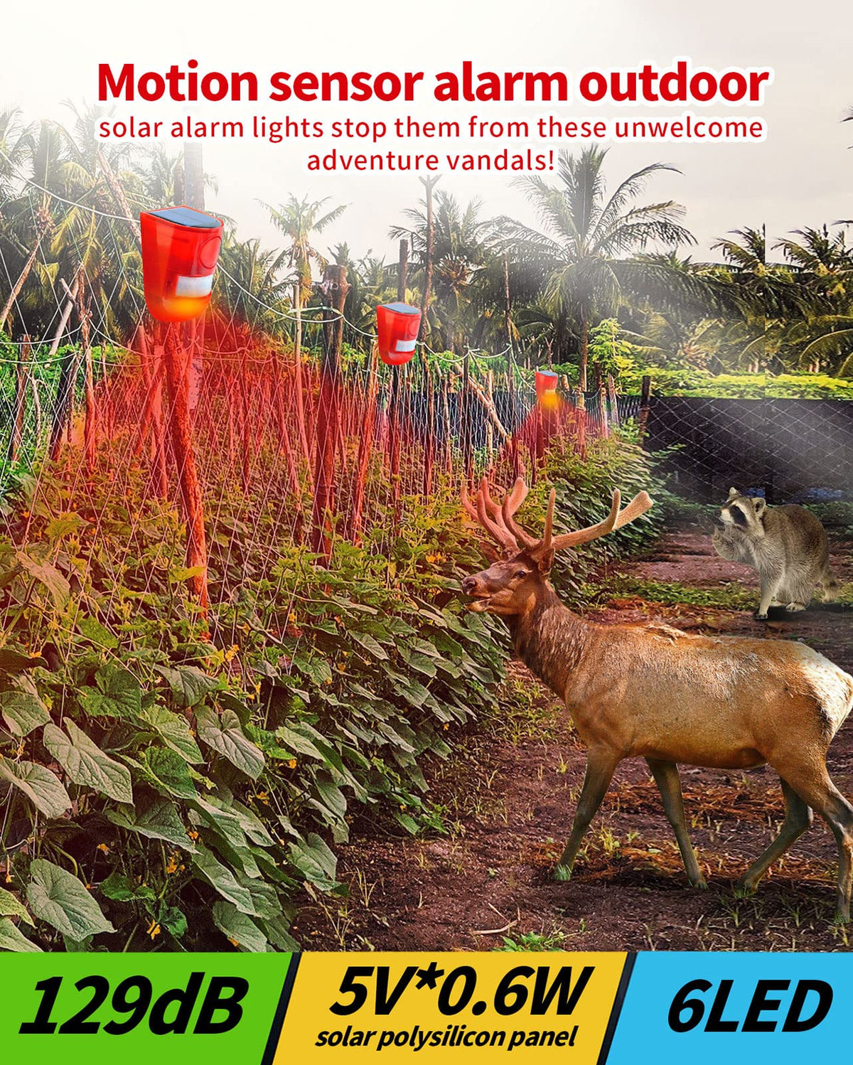 Chunhee Solar Sound & Light Alarm Outdoor Motion Sensor 129Db Siren Sound Alert & 6Leds Flash Warning Security Alarm System For Villa, Farm, Chicken Coop,Yard, Garden