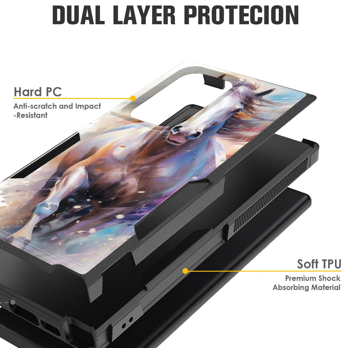 Cicplkse For Galaxy S23 Ultra Case,Dual Layer Heavy Duty Hybrid Shockproof Hard Pc Soft Silicone Tpu Bumper Protective Cover Cas