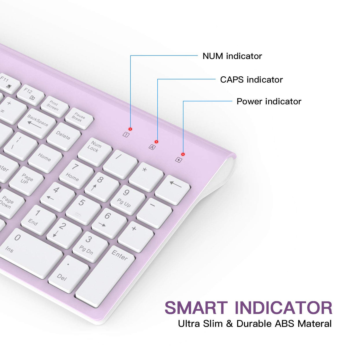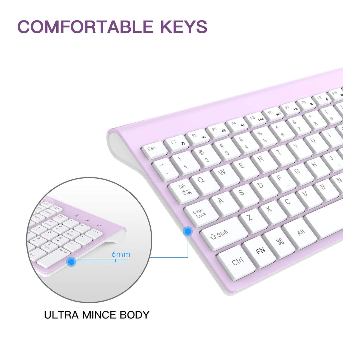 Cimetech Wireless Keyboard And Mouse Combo, Compact Full Size Purple Wireless Computer Keyboard And Mouse Set 2.4G Ultra Thin Sl