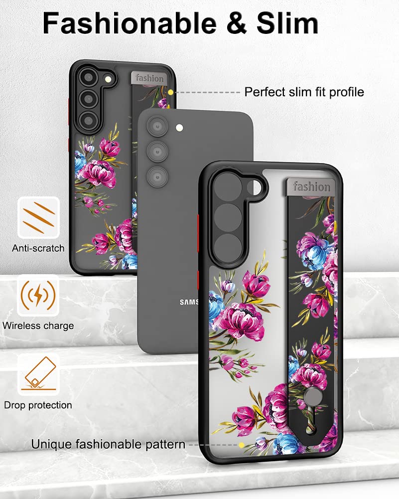Cisland Galaxy S23 Plus Case Cute With Strap Stand Finger Kickstand, Cute Case For Women Girly Designer For Girls Aesthetic Cool