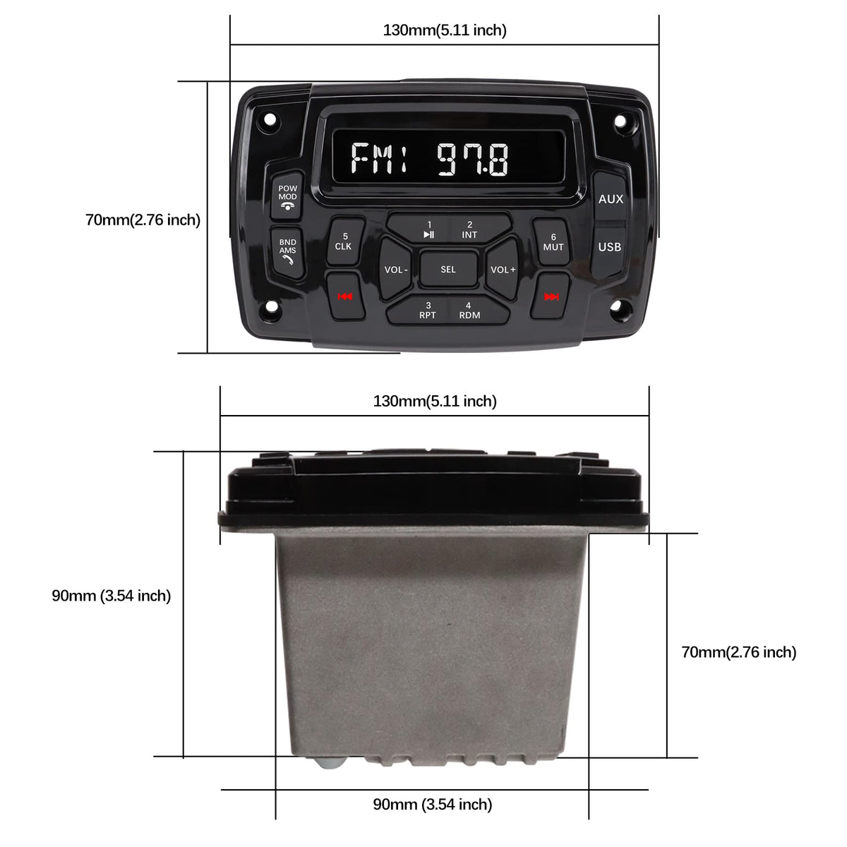 Citreal Marine Stereo Audio Radio Bluetooth Car Stereo Receivers Waterproof Player Mp3 Boat Media With Am/Fm Music Radio Usb Inp