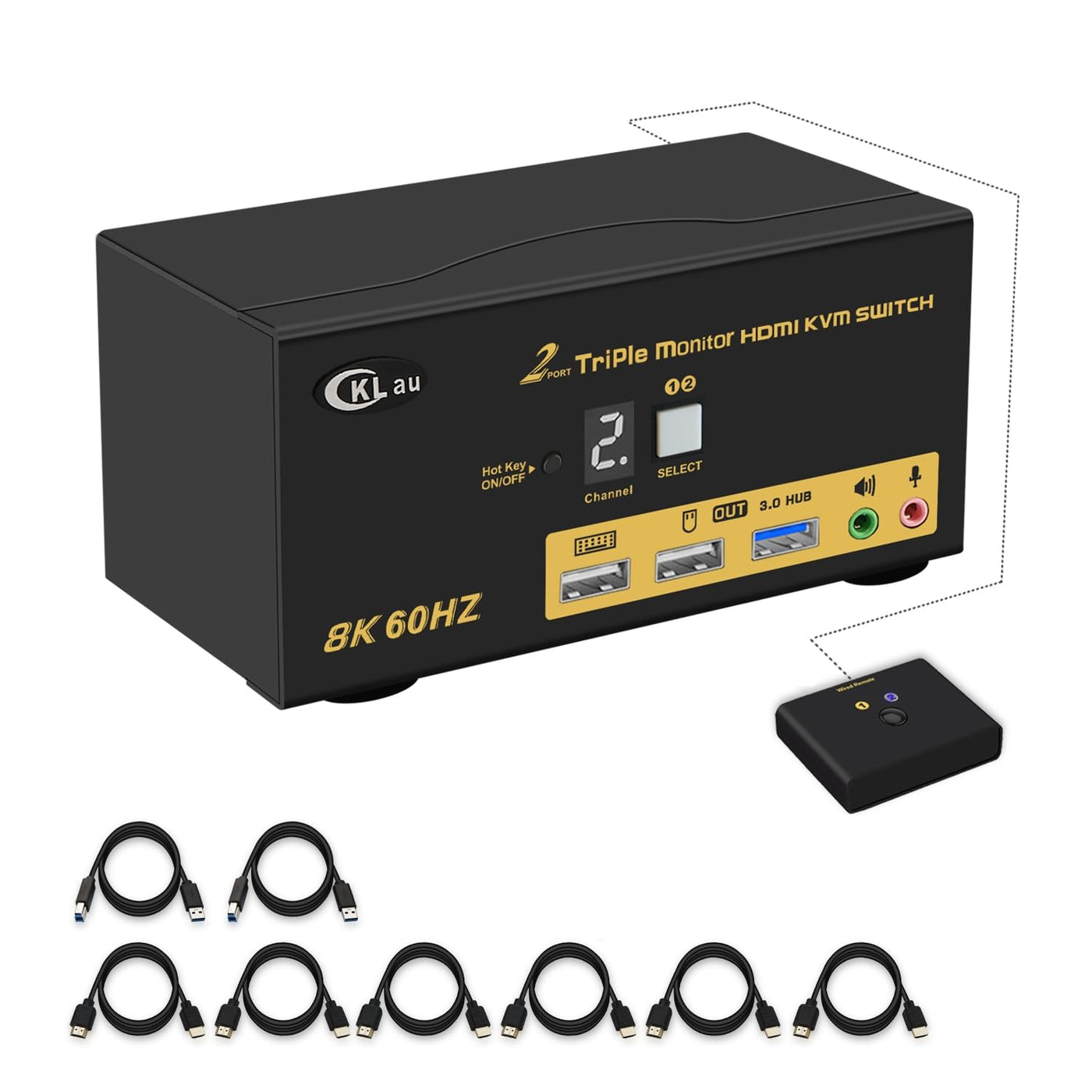Q: What resolutions does the CKLau KVM HDMI switch support?A: The CKLau KVM HDMI switch supports various high resolutions including 8K@60Hz and 4K@144Hz, as well as resolutions down to 1920x1200. This makes it suitable for high-definition gaming, professional video editing, and general multitasking.