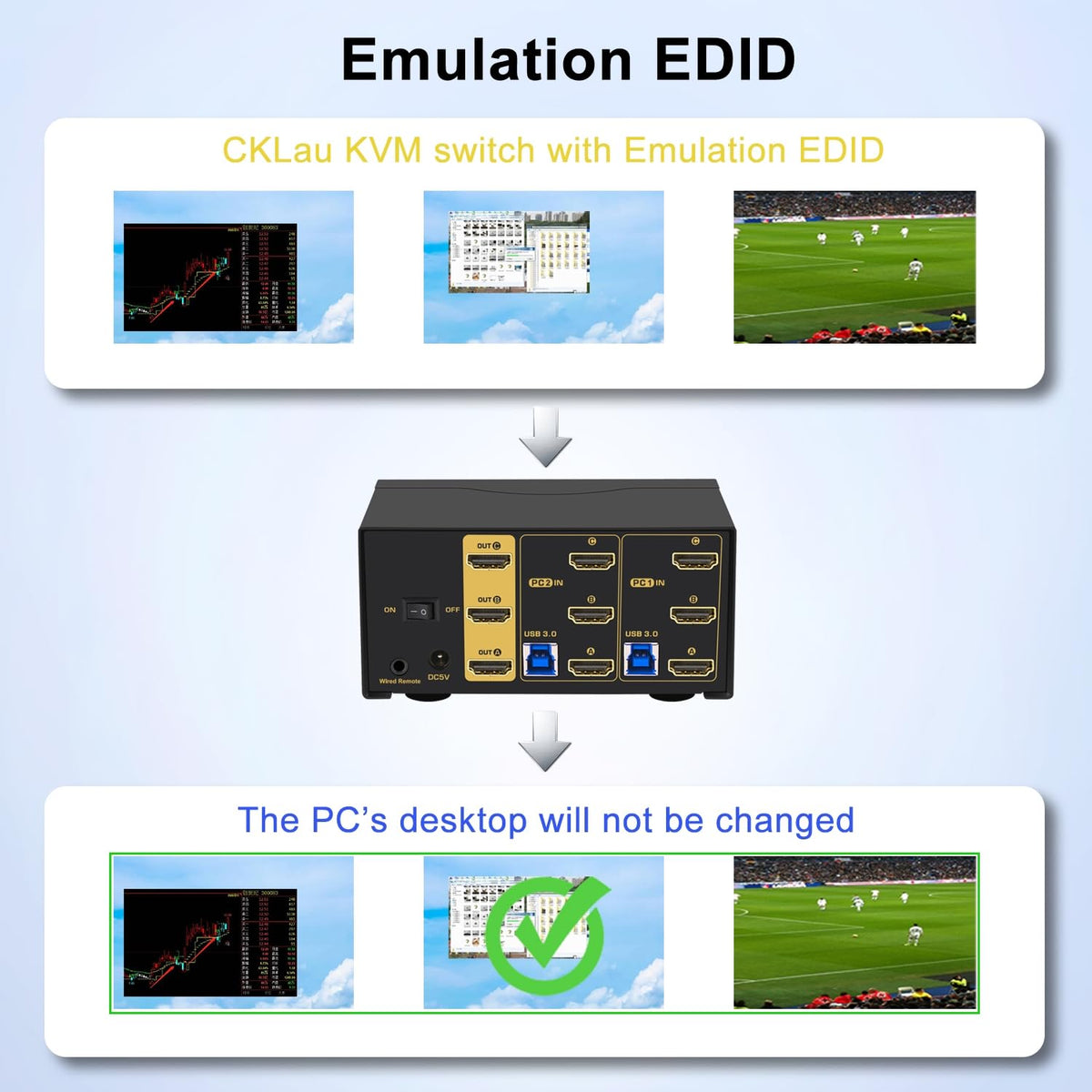 Cklau 2 Port Triple Monitor Kvm Hdmi Switch 8K@60Hz, 4K@144Hz For 3 Monitors 2 Computers Share Keyboard And Mouse Support Emulat