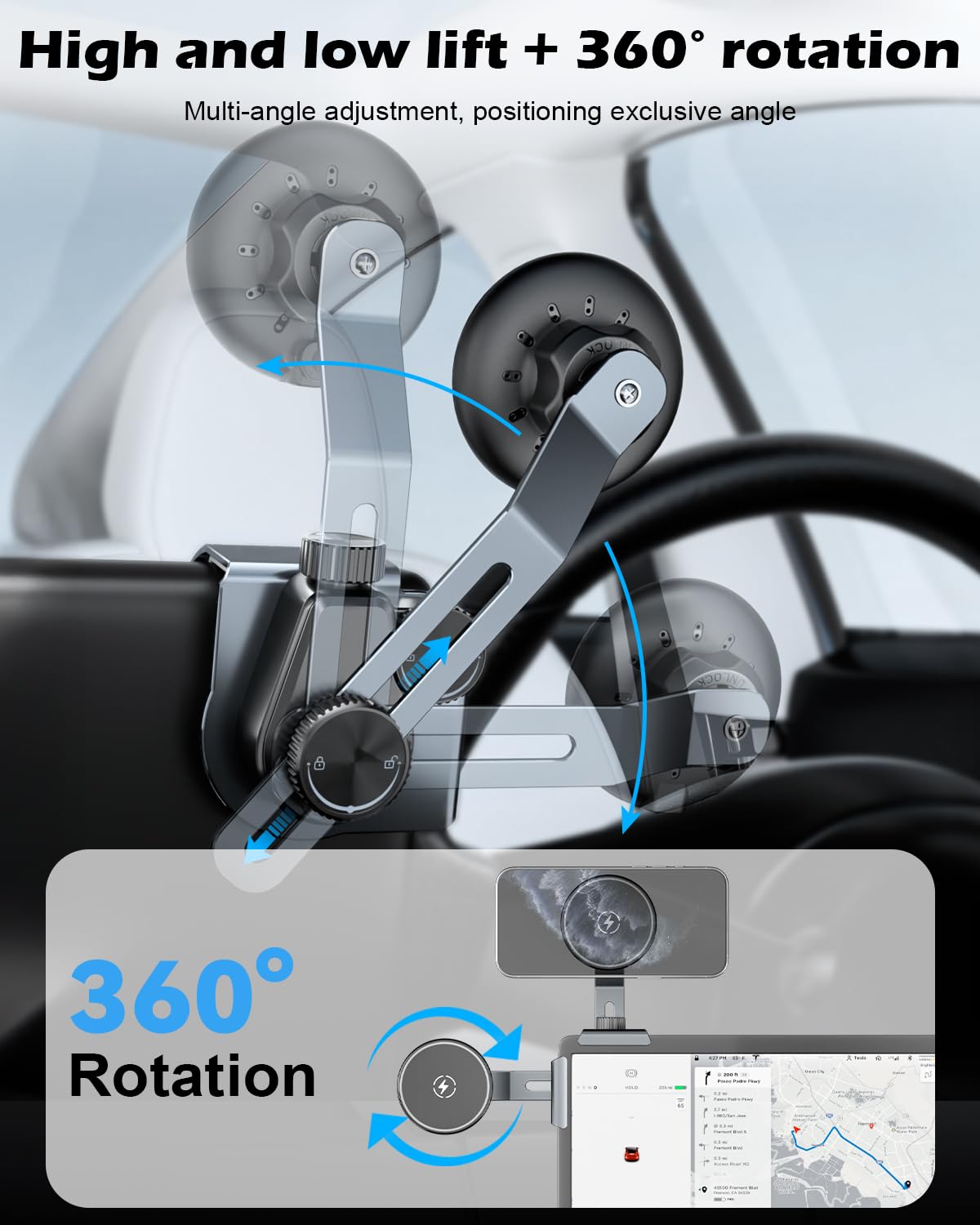 Cloudvalley Qi2 15W Wireless Charger Phone Mount For Tesla Model Y/3, ?Extendable Metal Holder?Compatible With Iphone Magsafe, S