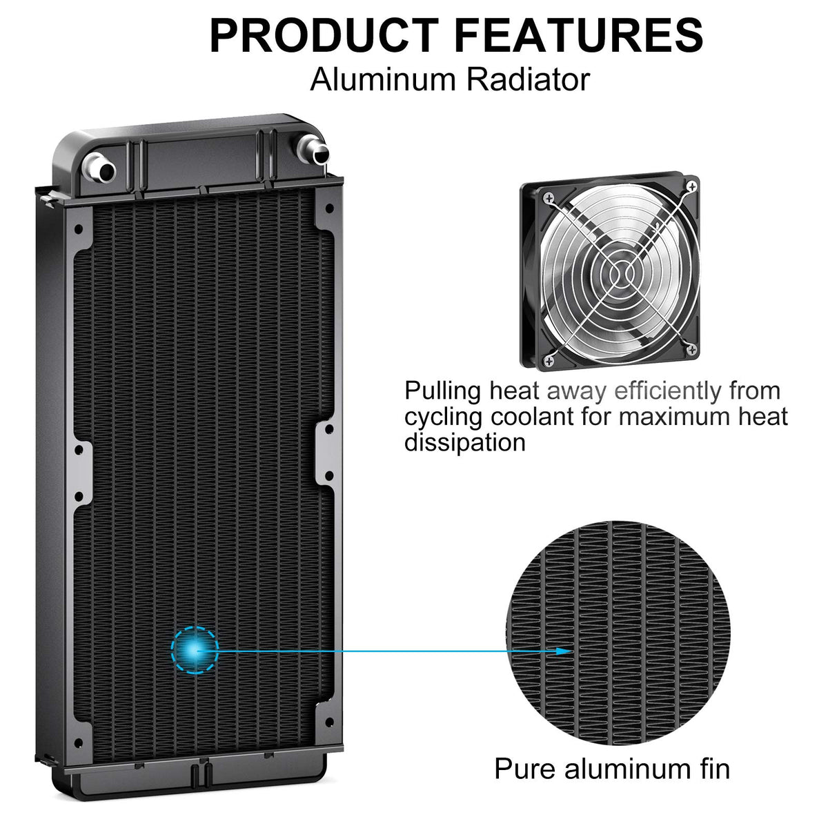 Q: What materials are used in the construction of this radiator?A: The Clyxgs Water Cooling Radiator is made from pure aluminum fins, ensuring effective heat dissipation and durability.
